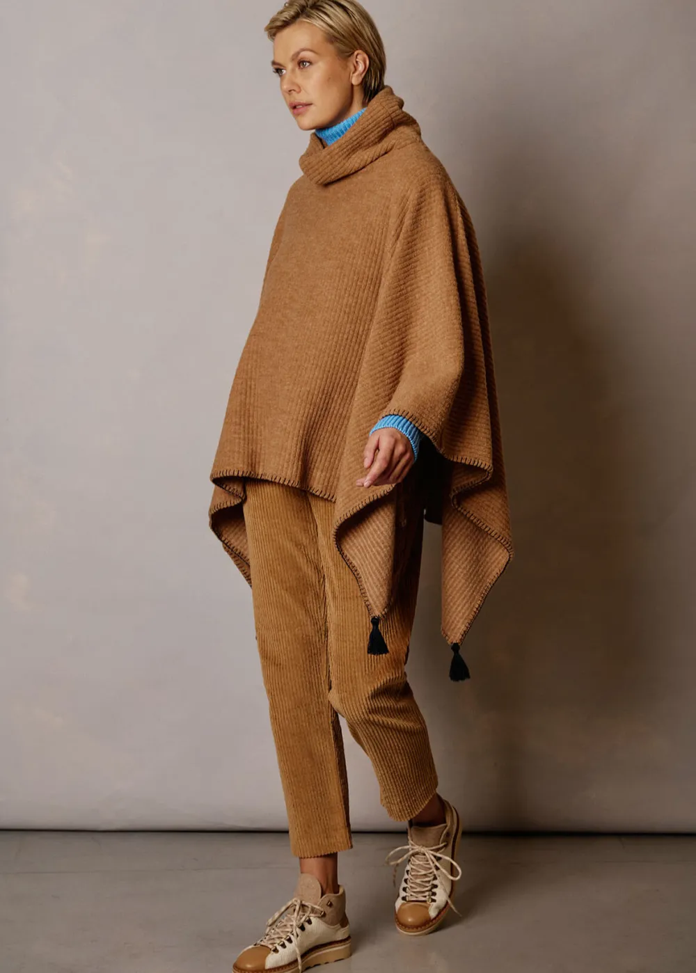 - Dieser ungefütterte Poncho im Comfort Fit mit Rollkragen besteht aus Schurwolle mit Nylonanteil in angenehmer Jersey-Qualität und im eleganten Rippstrick. Die Bommel an jedem der vier Ecken, sowie der von einem Schlingstich in Kontrastfarbe gezierte Saum verleihen dem vielseitigen Outdoor-Piece eine verspielte Note.