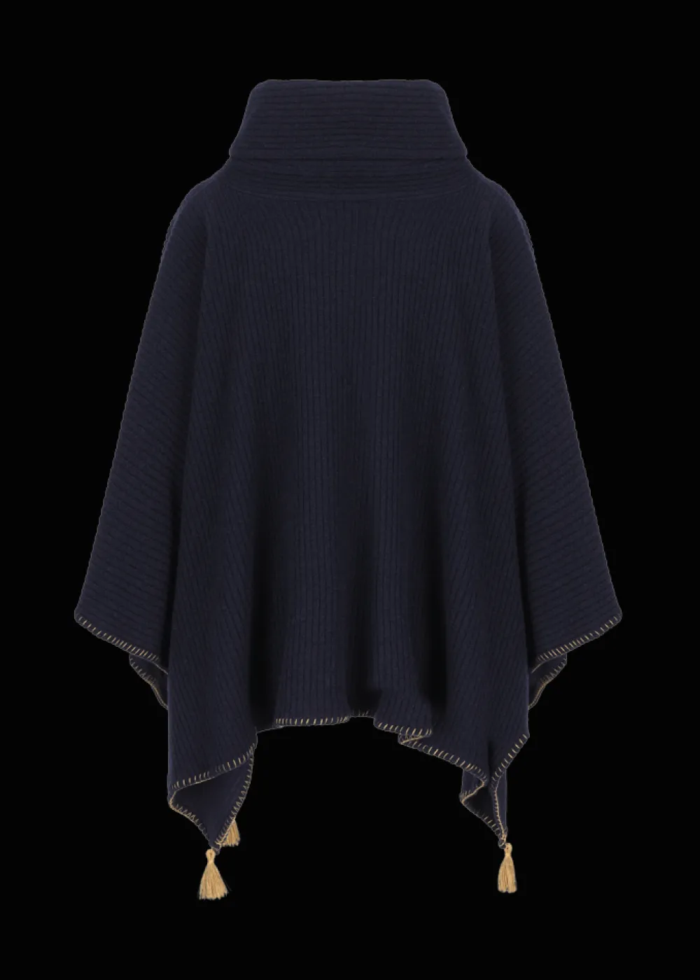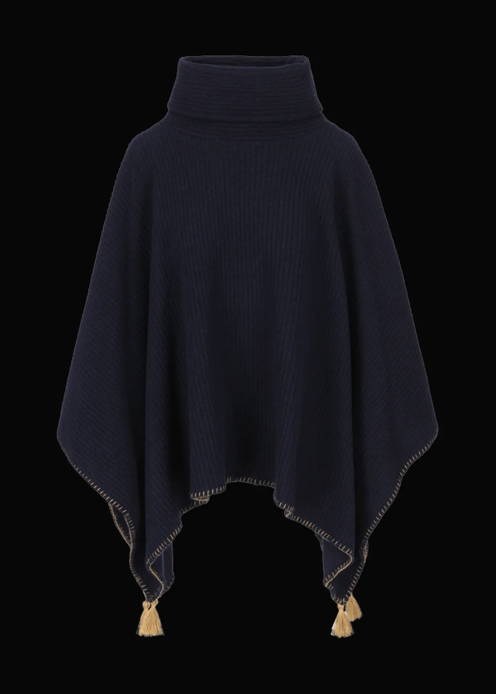 - Dieser ungefütterte Poncho im Comfort Fit mit Rollkragen besteht aus Schurwolle mit Nylonanteil in angenehmer Jersey-Qualität und im eleganten Rippstrick. Die Bommel an jedem der vier Ecken, sowie der von einem Schlingstich in Kontrastfarbe gezierte Saum verleihen dem vielseitigen Outdoor-Piece eine verspielte Note.