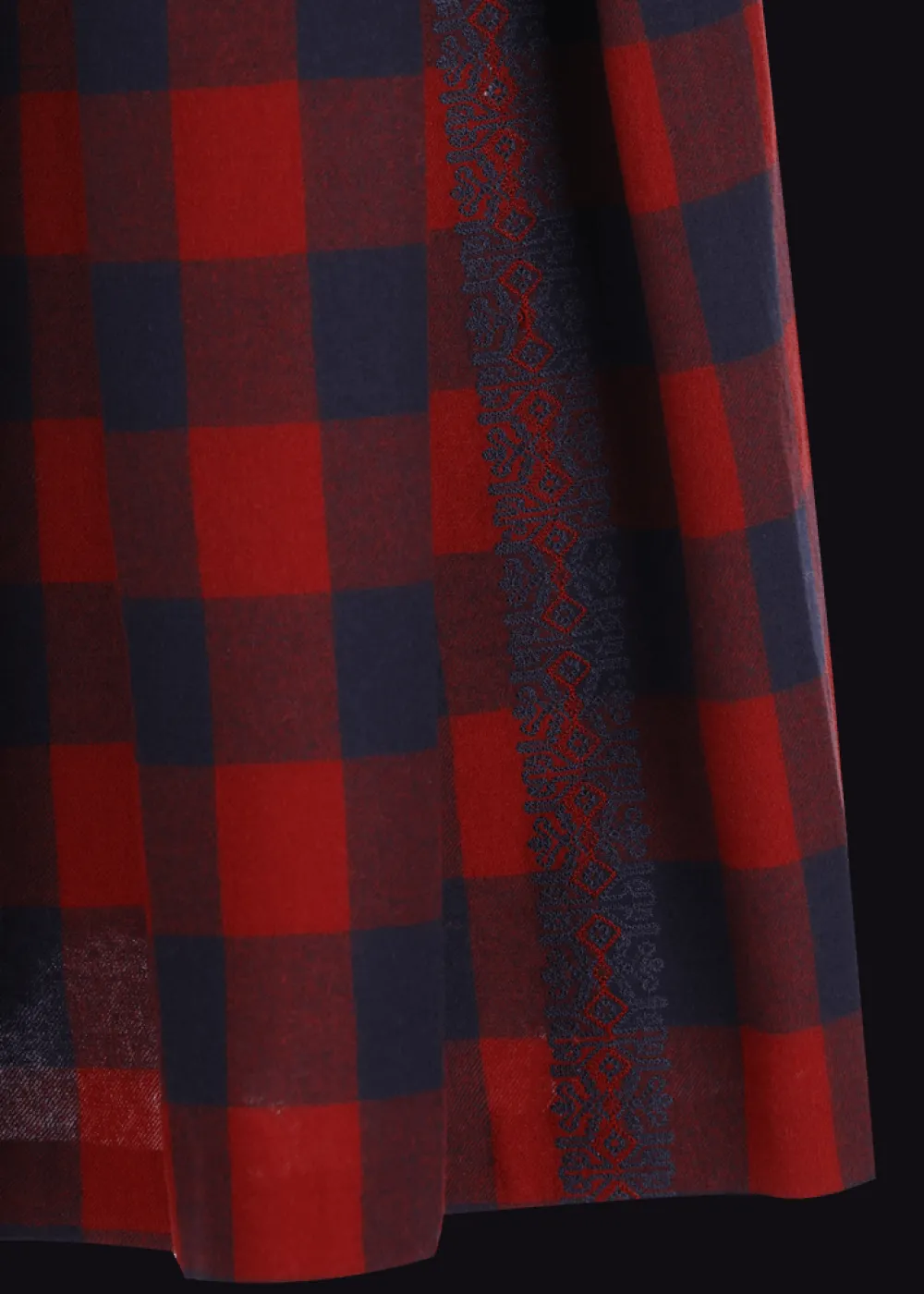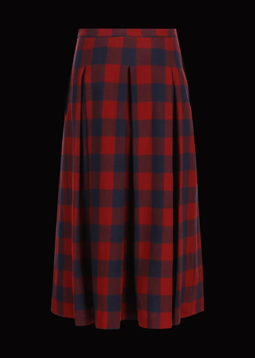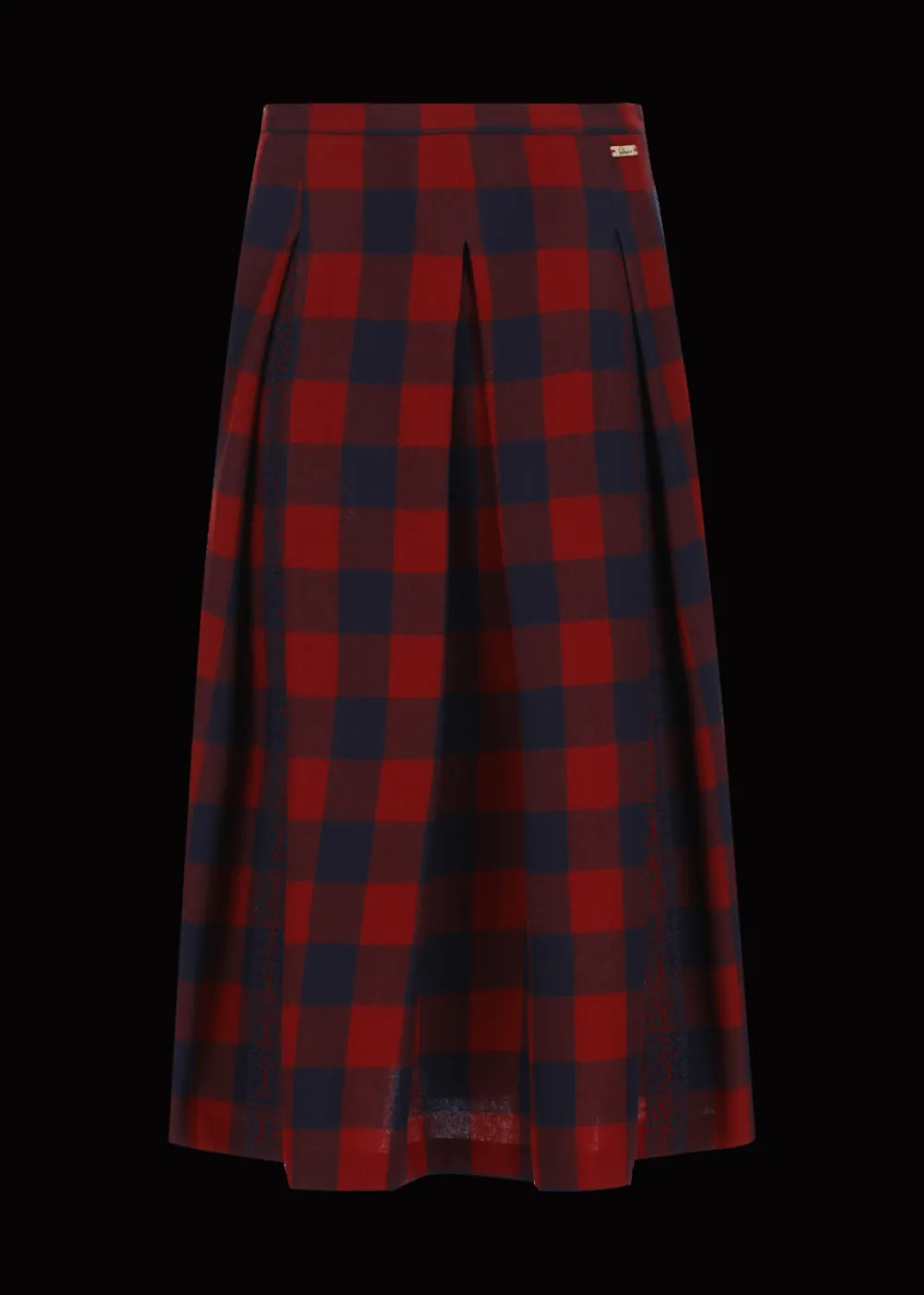 - Dieser ungefütterte, a-linienförmige Midirock im Comfort Fit besteht aus reiner Schurwolle mit Buffalo-Karomuster und besticht mit einer gestickten Bordüre als raffiniertes Detail an den Falten.