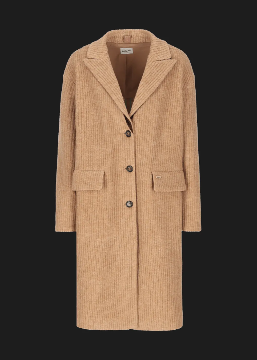 - Dieser ungefütterte Mantel im Comfort Fit mit Reverskragen, Pattentaschen und einreihiger Knopfleiste besteht aus Schurwolle mit Nylonanteil im Rippstrick.
