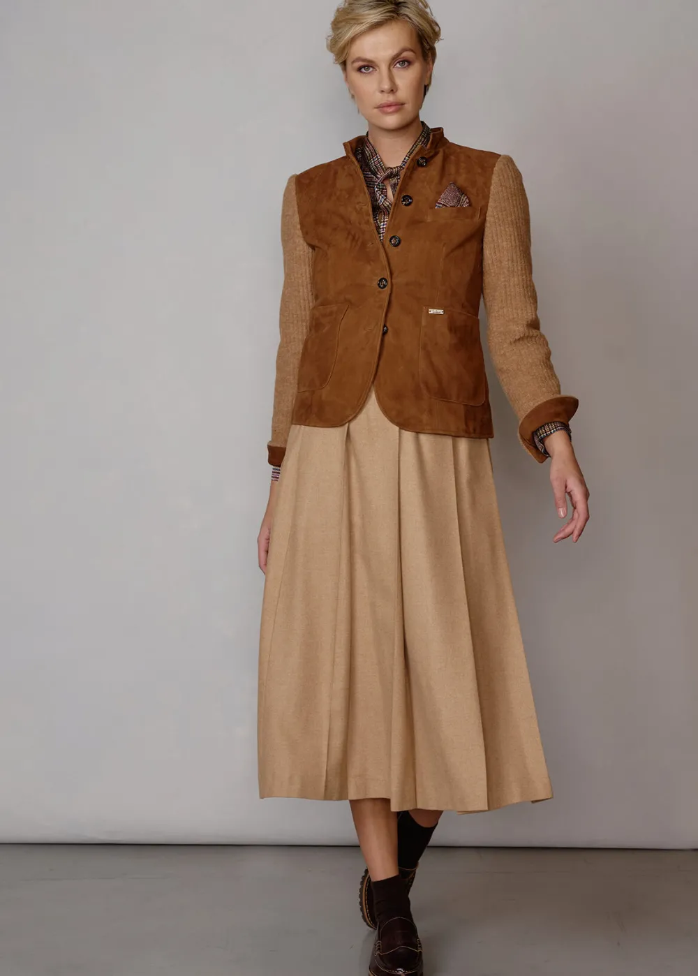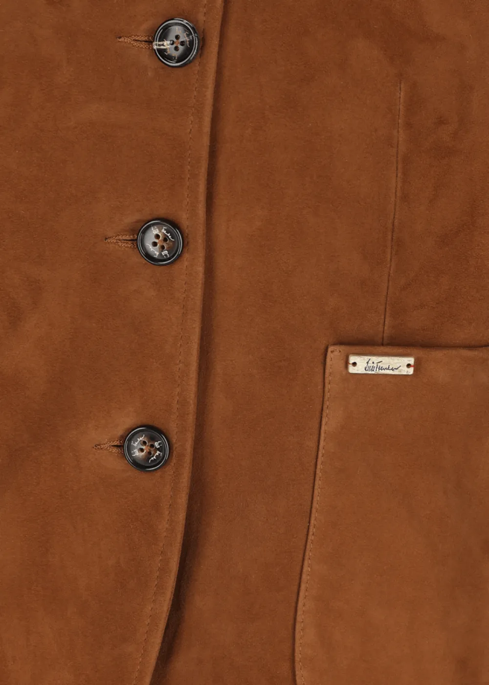 Besonderheiten: Vorderteil aus hochwertigem Ziegenwildleder, Viskose-Innenfutter mit farbenfrohem Muster, raffinierter Schlitz am Rücken, Logoplakette in Hornoptik an der linken Tasche - Unser Model Chantal ist 1,78 m groß und trägt die italienische Größe 42.