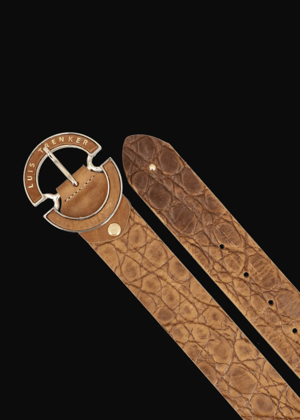 - Dieser Gürtel besteht aus echtem Glattleder mit Krokodilstruktur und erhält durch die runde, metallisch gerahmte Lederschnalle mit goldfarbenem, lasergedrucktem Luis Trenker Schriftzug Luis Trenker Schriftzug eine elegante Note.