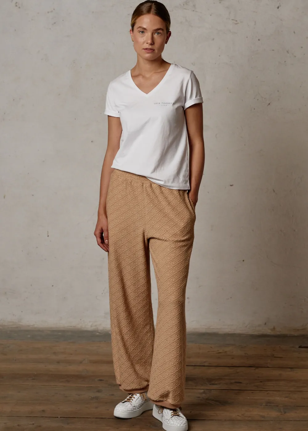 - Diese knöchellange Sweatpants im Regular Fit mit weitem, geradem Bein besteht aus Baumwolle und Nylon, verarbeitet zu einem bequemen Jersey-Frottee mit exklusiv für Luis Trenker entworfenem All-Over Rautenmotiv aus den Initialen LT. Der bequeme elastische Bund und die Bündchen im Rippstrick unterstreichen ihren sportlichen Charakter.