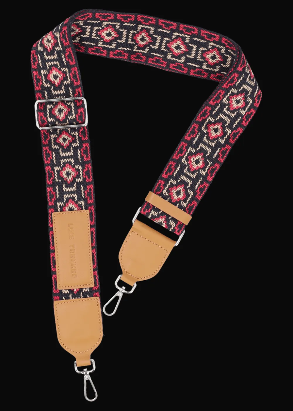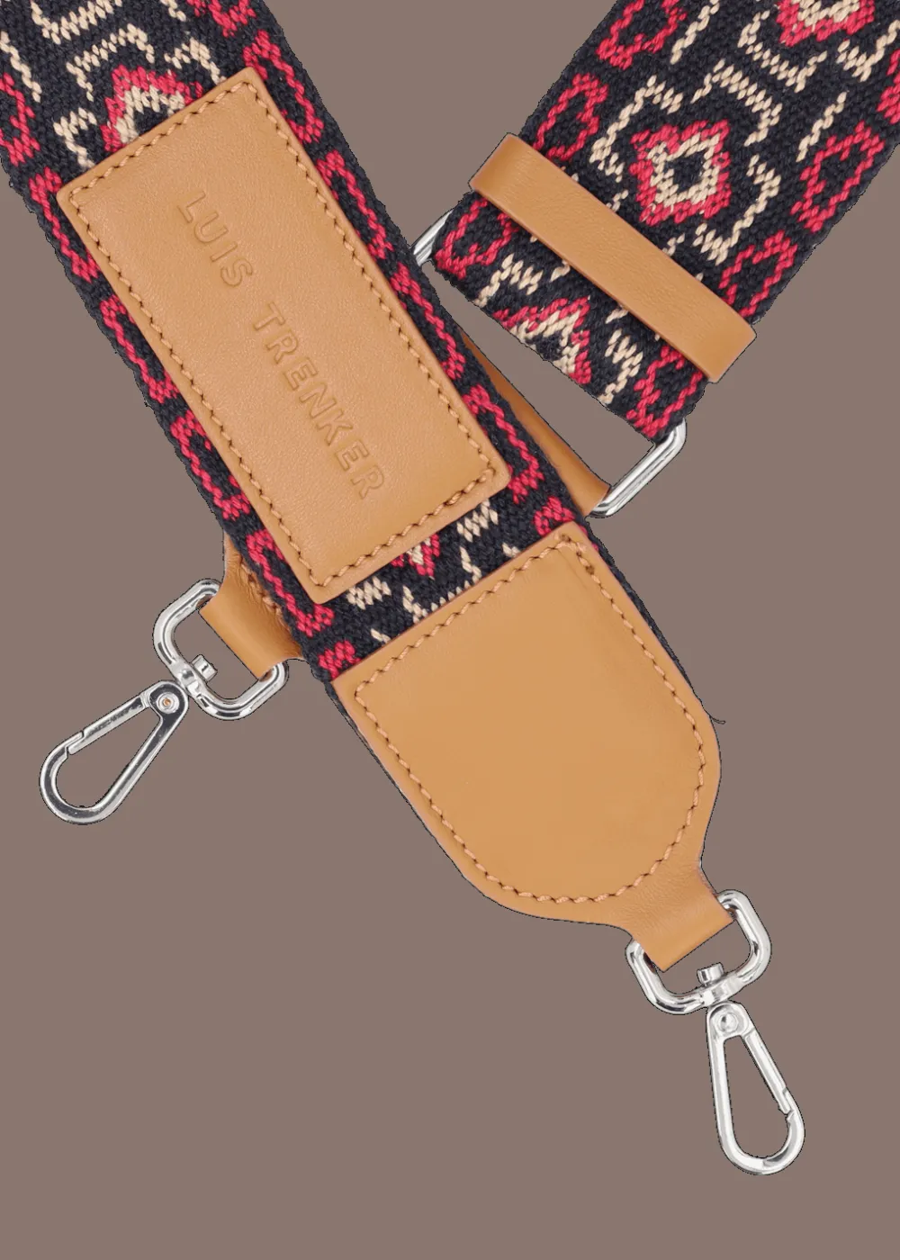 - Dieser Umhängegurt besteht aus reiner Baumwolle mit exklusiv für Luis Trenker designtem Ethno-Muster in erfrischenden Farben. Die cognacfarbenen Ledereinsätze, die verstellbare Länge und der Karabinerverschluss machen ihn zu einem ebenso stylishen wie praktischen Accessoire für Deine Tasche.