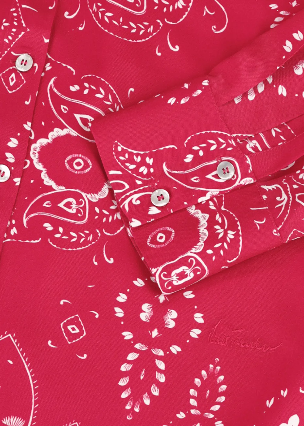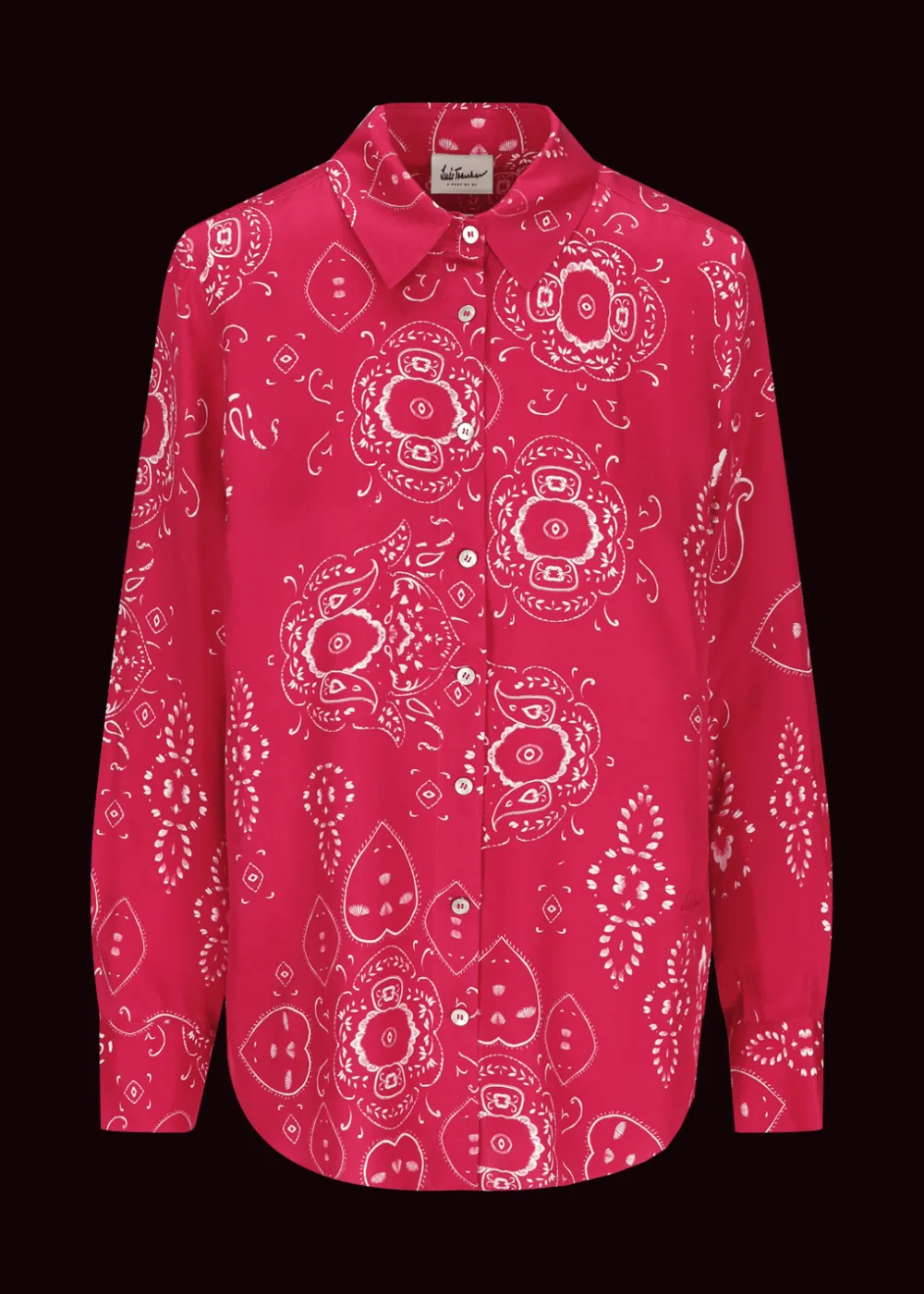 - Diese durchgeknöpfte Bluse im Comfort Fit mit klassischem Kentkragen besteht aus reiner Viskose mit exklusiv für Luis Trenker designtem Bandana-Print. Ihre edel schimmernden Knöpfe aus echtem Perlmutt verleihen ihr zudem eine elegante Note.