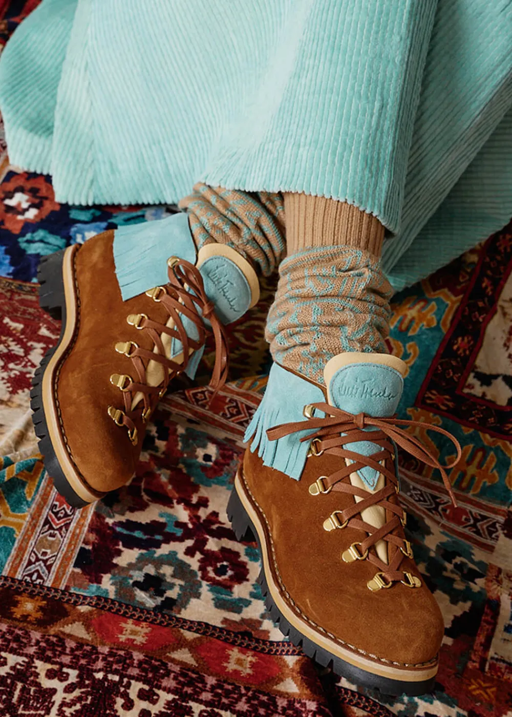 - Dieser handgefertigte Schnürschuh aus braunem Wildleder versprüht durch sein Ethno-Fransendetail in Kontrastfarbe pures Pocahontas-Feeling.