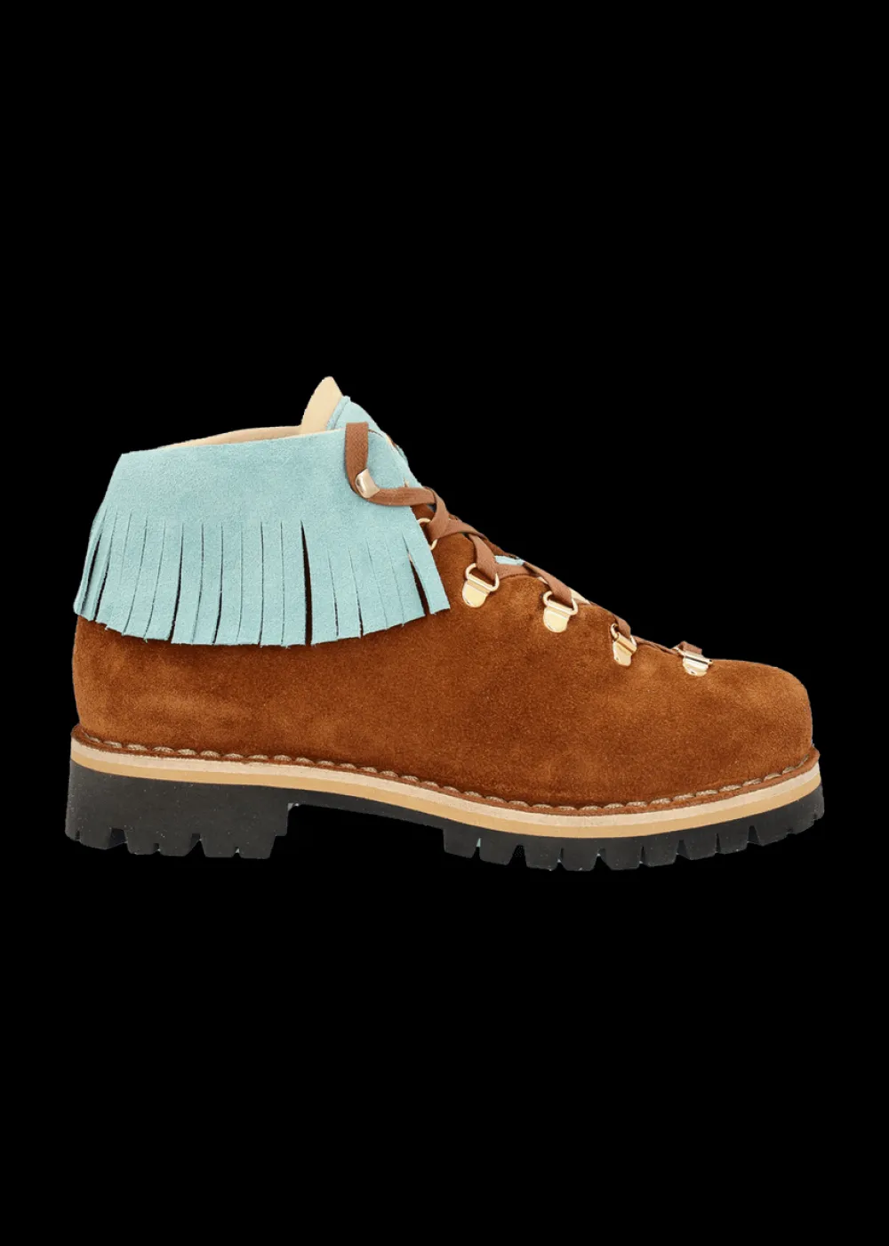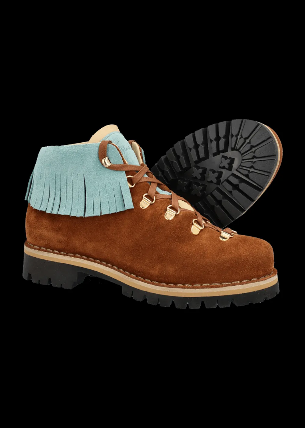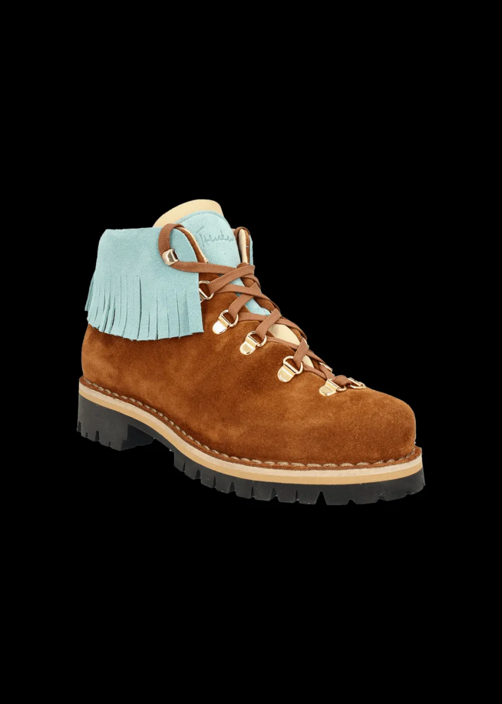 Innensohle: Atmungsaktive Kork-Einlegesohle - Besonderheiten: Zunge und Ethno-Fransendetail aus Wildleder in Kontrastfarbe, geprägtes Luis Trenker Logo an der Zunge, rahmengenähte Machart, in traditioneller Manufaktur in Italien von Hand gefertigt