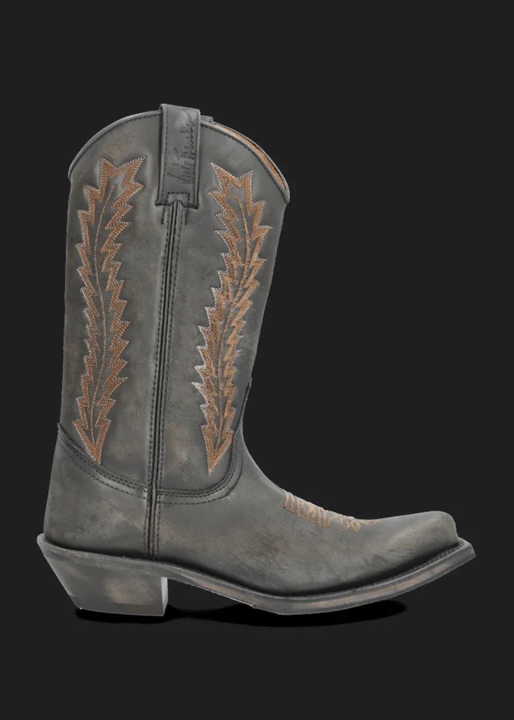 Form: Spitz zulaufend, mit eckiger Zehenpartie - Besonderheiten: Aufwändige Fadenstickerei, geprägtes Luis Trenker Logo an der Lasche, abgerundeter Schaft, metallisch verstärkte Zehenkappe, strukturierte Gummisohle, handgefertigt in Spanien