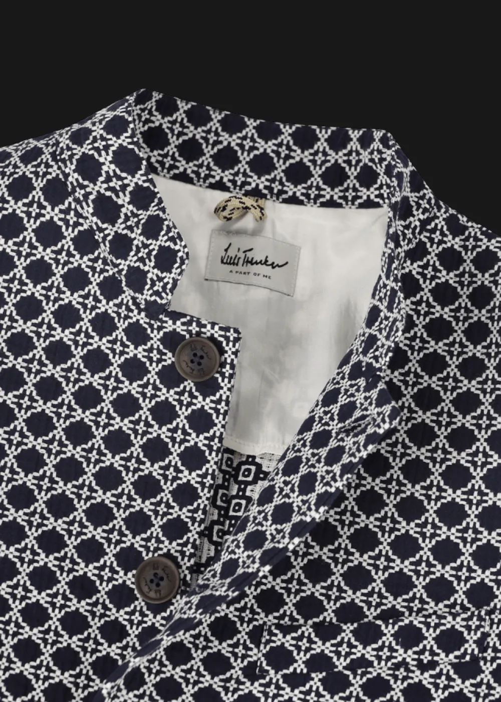 Futter: Halbgefüttert - Besonderheiten: Hochwertiges Baumwolljacquard mit extravagantem Muster, Logoplakette in Hornoptik an der linken Tasche