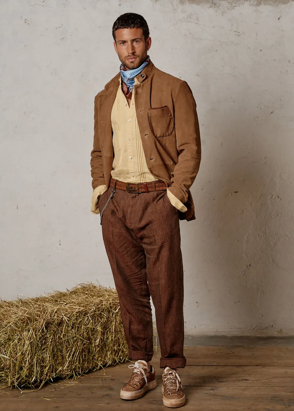 - Dieses klassische Blazermodell im Regular Fit mit Stehkragen ist ein fester Bestandteil der Markengeschichte von Luis Trenker: Vom ersten Moment an hat es die Herrenkollektion geprägt und ist seither in jeder Saison vertreten. Diese vollständig gefütterte Outdoor-Variante besteht aus kostbarem Ziegen-Wildleder in leichter Distressed-Waschung, welche ihr einen besonders lebhaften Effekt verleiht.