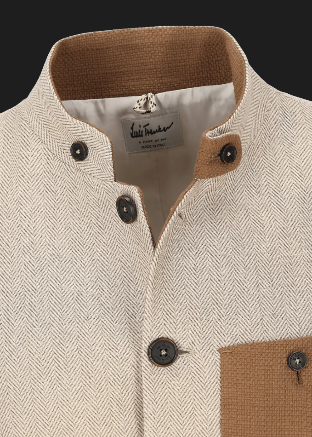 - Dieser in Italien gefertigte Blazer im Regular Fit mit Stehkragen besteht an Vorderteil und Rücken aus reiner Baumwolle mit Fischgrätmuster, während die Ärmel aus Baumwollgabardine gefertigt sind. An den aufgesetzten Taschen, sowie am Kragen rundet ein strukturierter Baumwollstoff den Materialmix ab.