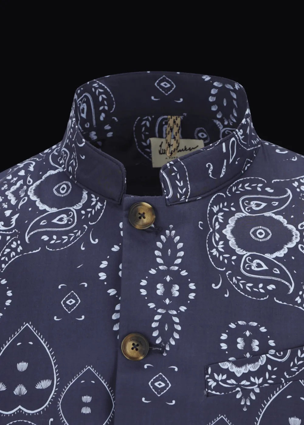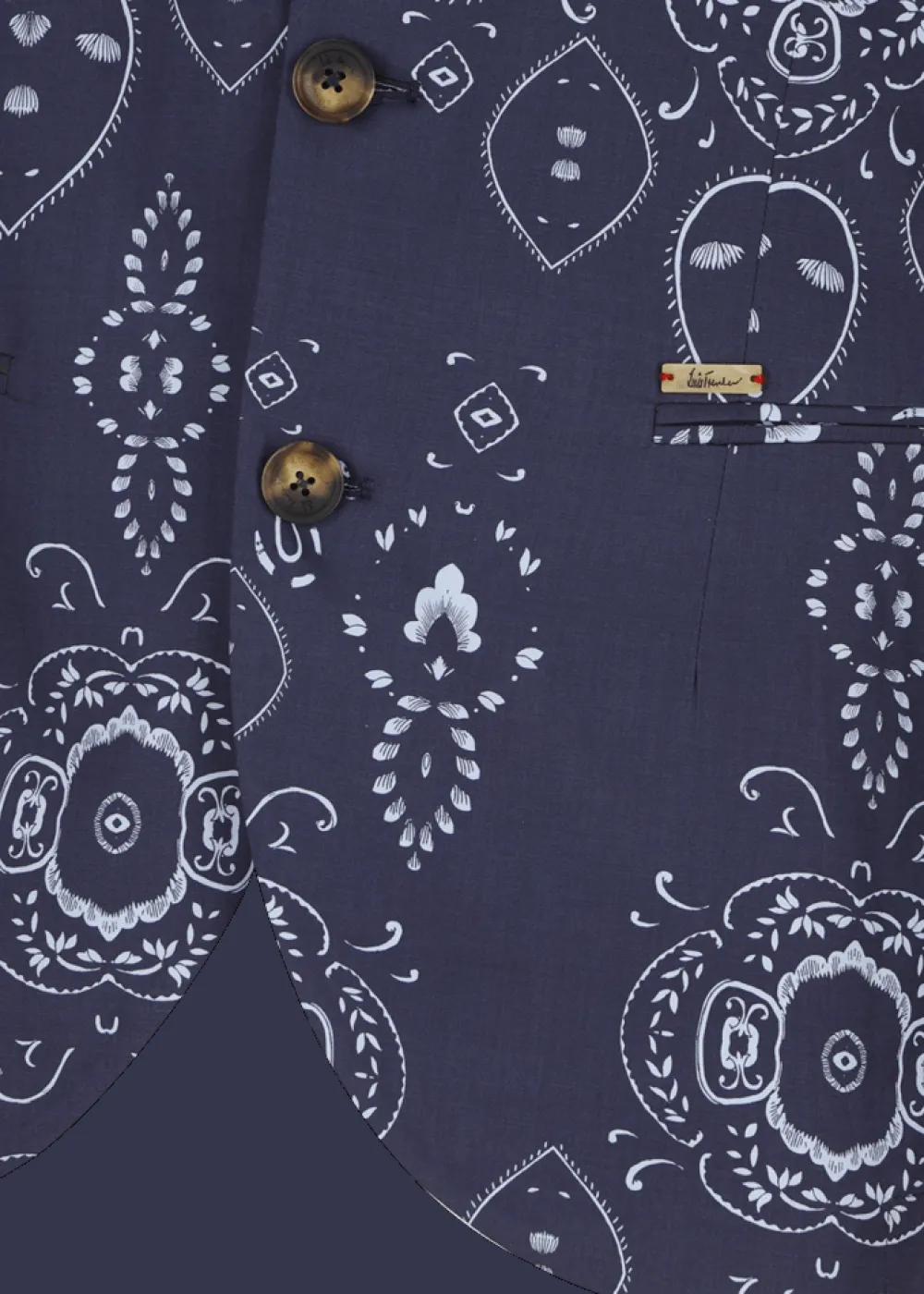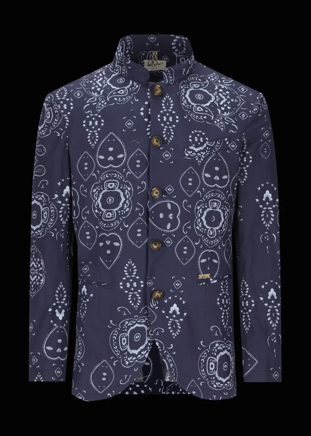 - Dieser ungefütterte, in Italien gefertigte Blazer im Regular Fit mit Stehkragen ist dank seinem leichten Hemdenstoff aus reiner Baumwolle wie gemacht für heiße Tage. Der exklusiv für Luis Trenker designte All-Over-Print mit Bandana-Motiv macht ihn zum extravaganten Hingucker.
