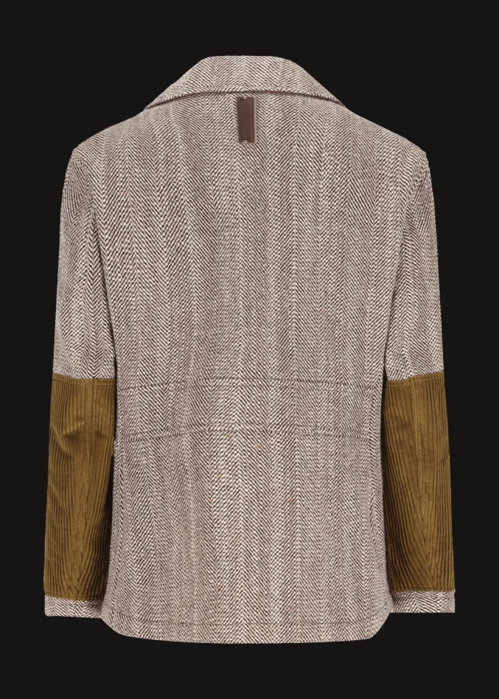 Besonderheiten: Recycelte Woll-Leinen-Mischung, Details aus Cord in Kontrastfarbe an Taschen und Ellbogen, Echtleder-Patch mit Luis Trenker Prägung am Rücken, Logoplakette in Hornoptik an der linken Tasche - Unser Model Federico ist 1,88 m groß und trägt Größe 50.