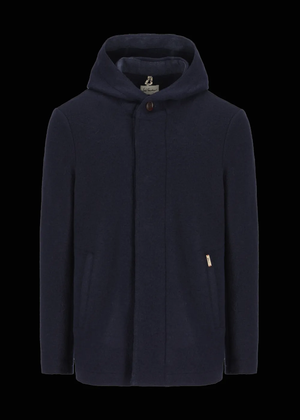 Besonderheiten: Walk aus reiner Schurwolle in besonders leichter Qualität, extra Tragekomfort, Innenseite von Kapuze und Knopfleiste im Kontraststoff mit Fischgrätmuster, Echtleder-Patch mit Luis Trenker Prägung am Rücken, Logoplakette in Hornoptik an der linken Tasche