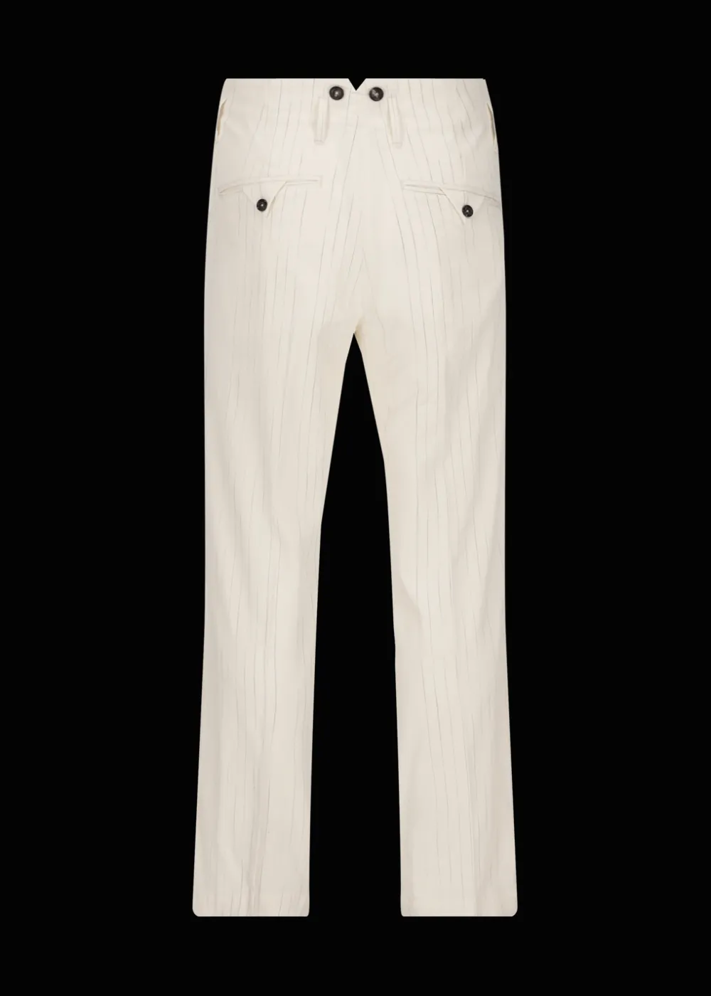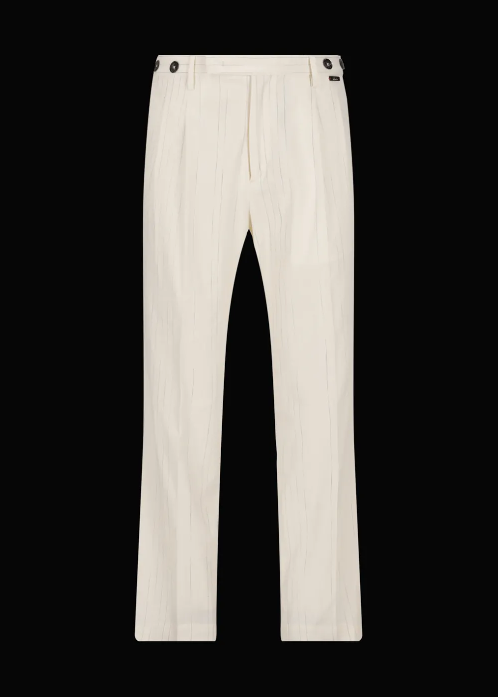 Herkunft: In Italien gefertigt - Besonderheiten: Unregelmäßige Nadelstreifen für einen lebendigen und dreidimensionalen Effekt, elegante Bundfalten, Knöpfe aus Echthorn außen am Gürtel zum Befestigen von Hosenträgern, etwas höherer Bund an der Rückseite, Logoplakette an der linken Taille