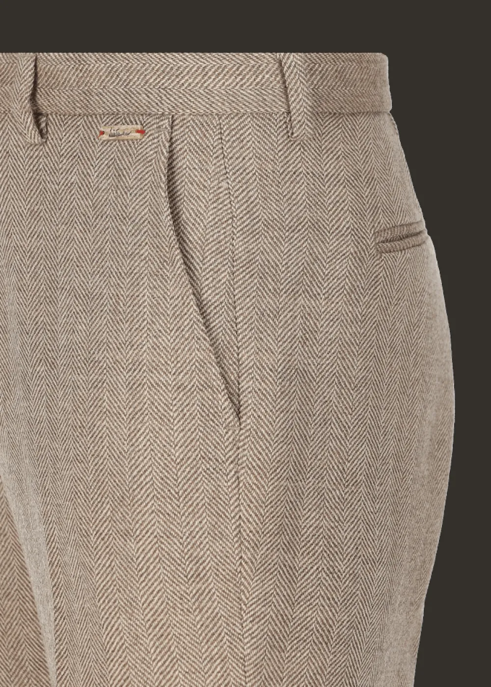 Besonderheiten: Reine Schurwolle in erlesener Qualität, Knöpfe aus Echthorn, Bügelfalte, Logoplakette in Hornoptik an der linken Taille - Unser Model Federico ist 1,88 m groß und trägt Größe 50.