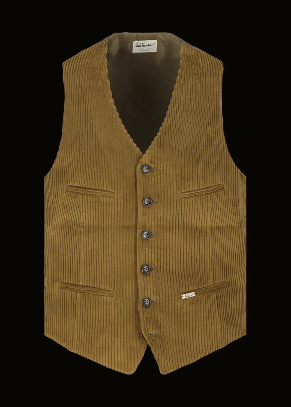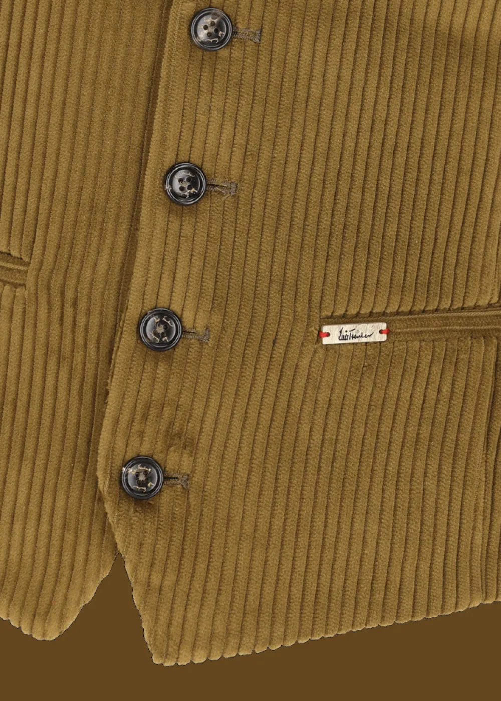 - Diese in Italien gefertigte, einreihige Weste im Regular Fit mit V-Ausschnitt aus reinem Baumwollcord ist am Rücken, der aus glatter Baumwolle besteht, in der Weite regulierbar. Sie hat eine einreihige 6-Button-Front mit Knöpfen aus Echthorn, sowie vier Leistentaschen.
