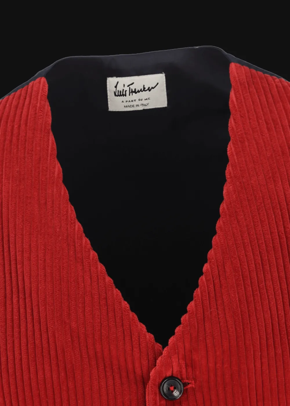 - Diese in Italien gefertigte, einreihige Weste im Regular Fit mit V-Ausschnitt aus reinem Baumwollcord ist am Rücken, der aus glatter Baumwolle besteht, in der Weite regulierbar. Sie hat eine einreihige 6-Button-Front mit Knöpfen aus Echthorn, sowie vier Leistentaschen.