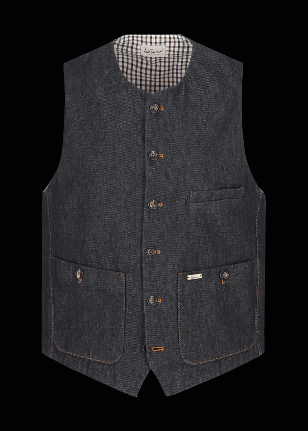- Diese Weste im Regular Fit mit Rundhalsausschnitt besteht aus recycelter Baumwolle, verarbeitet zu Denim in dunkler Waschung, und ist mit echtem Indigo gefärbt. Sie hat eine 6-Button-Front mit Knöpfen aus Echthorn, eine Brusttasche und zwei aufgesetzte Taschen mit Knopfverschluss. Am Rücken ist sie mit einer Schnalle verstellbar, sodass sie sich Deiner individuellen Körperform perfekt anpasst.
