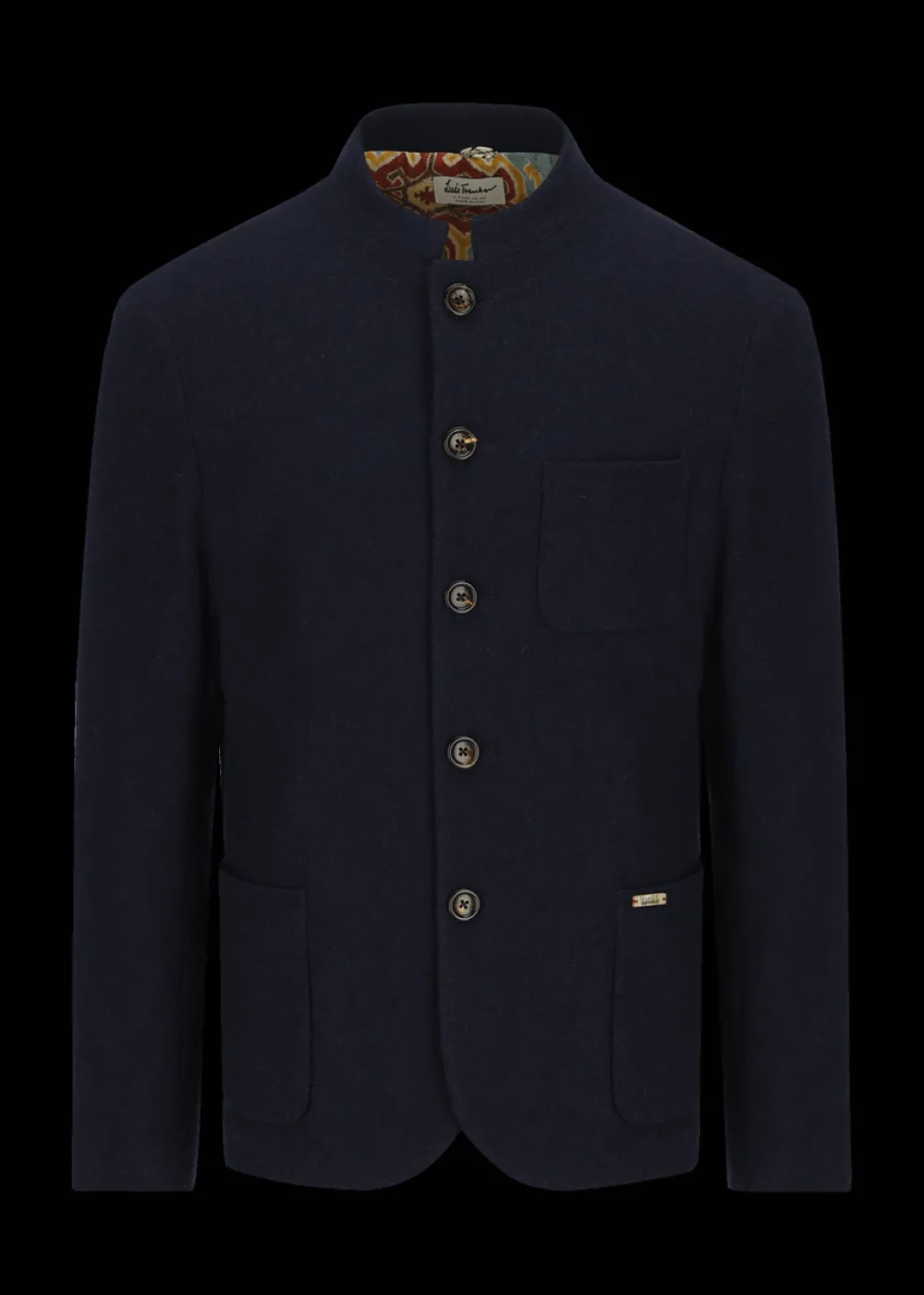 - Dieser halbgefütterte Blazer im Regular Fit mit Stehkragen besteht aus einer angenehm weichen Schurwollmischung mit Fischgrätmuster. Das Innenfutter im Schulterbereich ist durch seinen Ethno-Print, der exklusiv für Luis Trenker designt wurde, ein echter Eyecatcher.