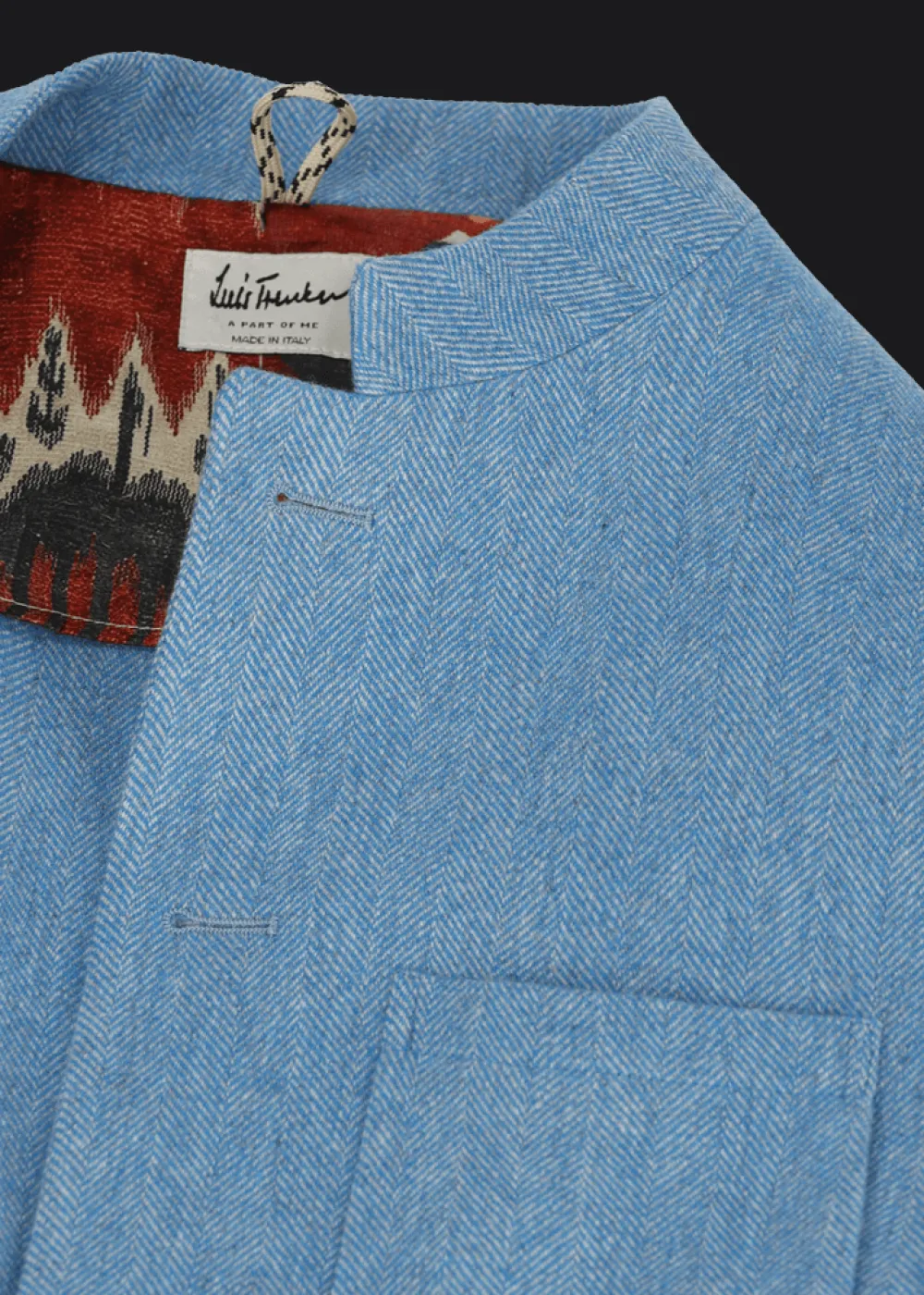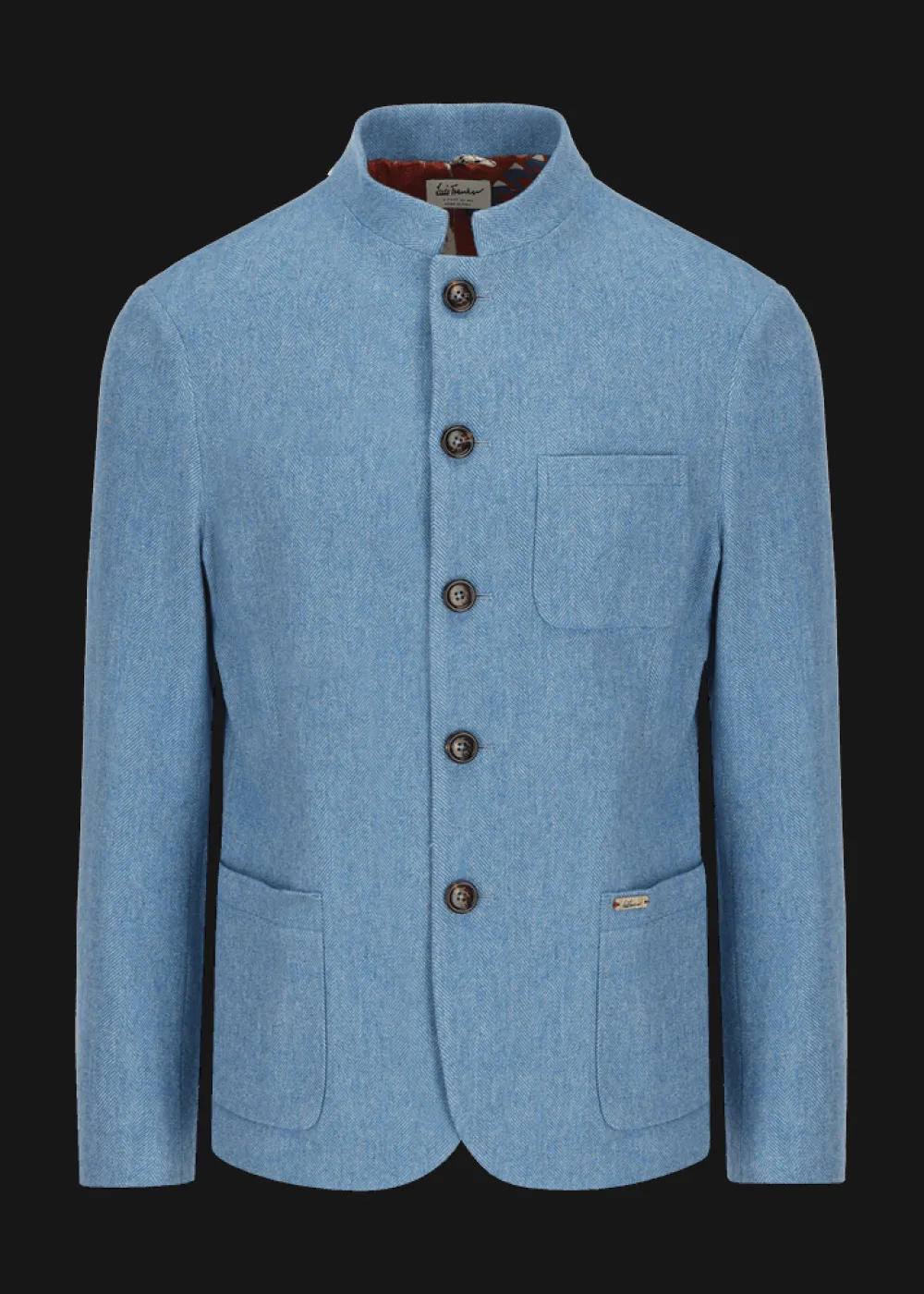 - Dieser halbgefütterte Blazer im Regular Fit mit Stehkragen besteht aus einer angenehm weichen Schurwollmischung mit Fischgrätmuster. Das Innenfutter im Schulterbereich ist durch seinen Ethno-Print, der exklusiv für Luis Trenker designt wurde, ein echter Eyecatcher.