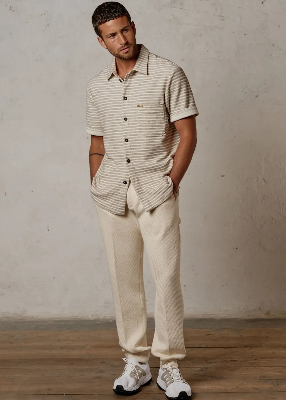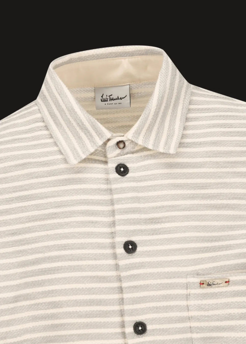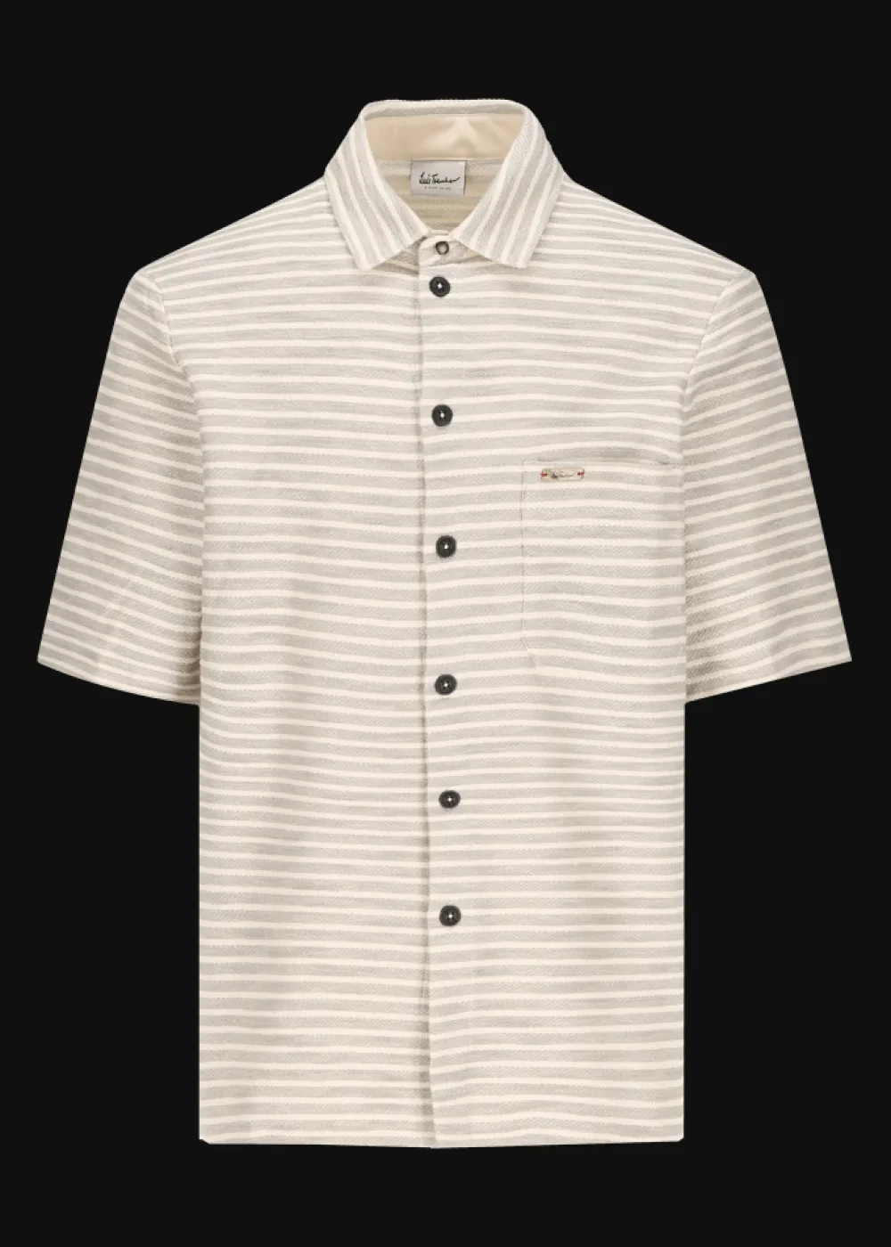 - Dieses lässige Sweat-Hemd im Regular Fit mit kurzen Ärmeln besteht aus leichtem Baumwolljersey mit horizontalen Streifen im Melange-Look. Die durchgehende Knopfleiste mit Knöpfen aus echter Steinnuss, der klassische Kentkragen und die aufgesetzte Brusttasche sind die Merkmale, die dieses Modell neben seinem unvergleichlichen Tragekomfort auszeichnen.