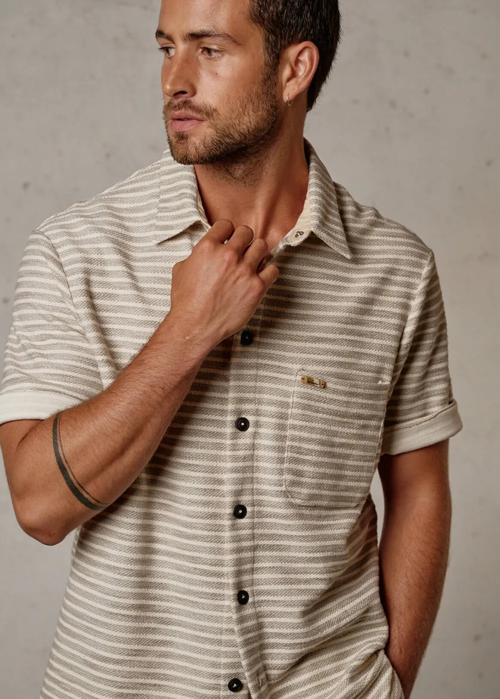 - Dieses lässige Sweat-Hemd im Regular Fit mit kurzen Ärmeln besteht aus leichtem Baumwolljersey mit horizontalen Streifen im Melange-Look. Die durchgehende Knopfleiste mit Knöpfen aus echter Steinnuss, der klassische Kentkragen und die aufgesetzte Brusttasche sind die Merkmale, die dieses Modell neben seinem unvergleichlichen Tragekomfort auszeichnen.