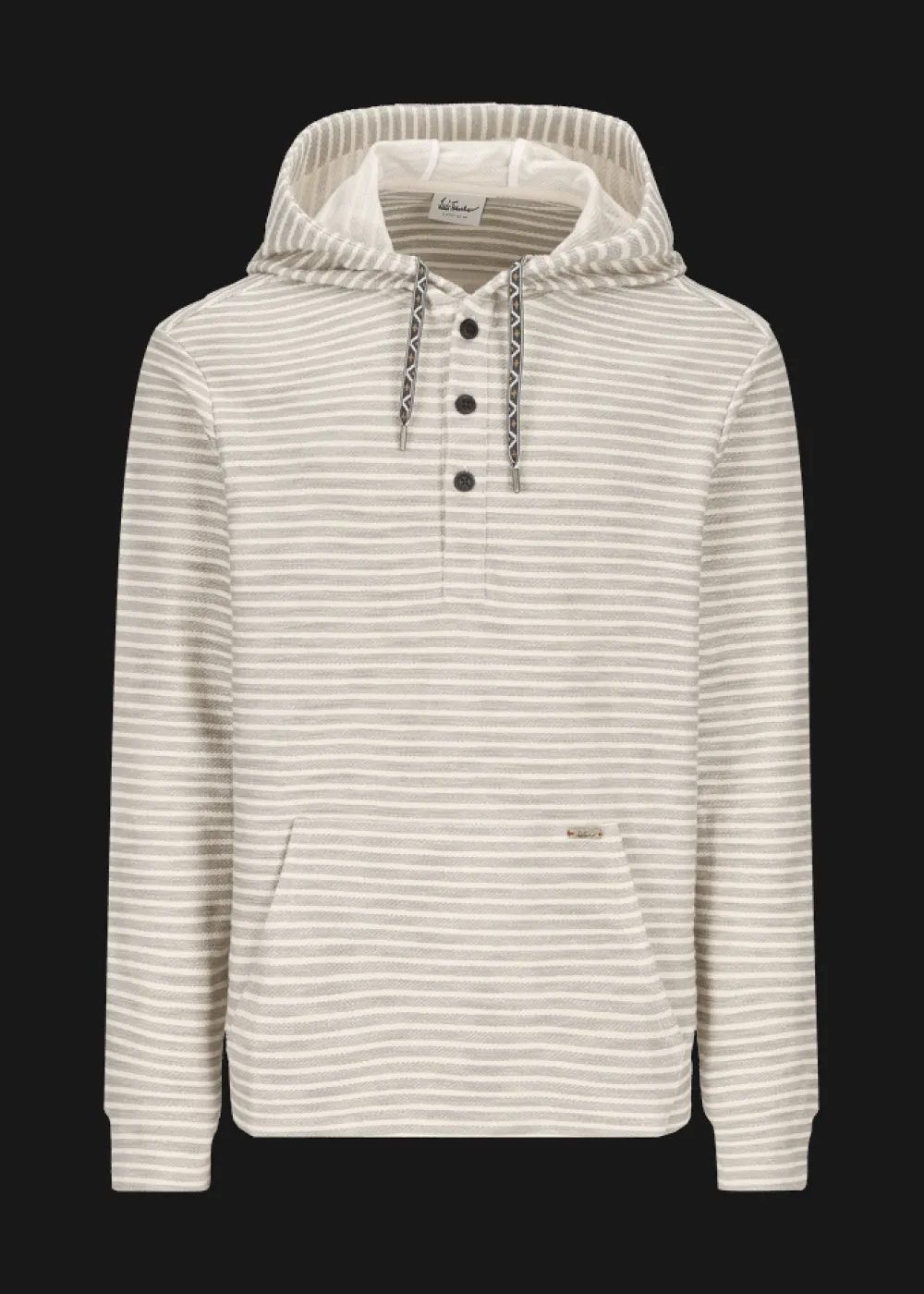 - Dieses lässige Sweatshirt im Regular Fit mit Kapuze besteht aus leichtem Baumwolljersey mit horizontalen Streifen im Melange-Look. Die kurze Knopfleiste mit Druckknopf und Knöpfen aus echter Steinnuss, die praktische Kängurutasche, sowie die Bänder im Ethno-Look an der Kapuze sind die Merkmale, die dieses Modell neben seinem unvergleichlichen Tragekomfort auszeichnen.