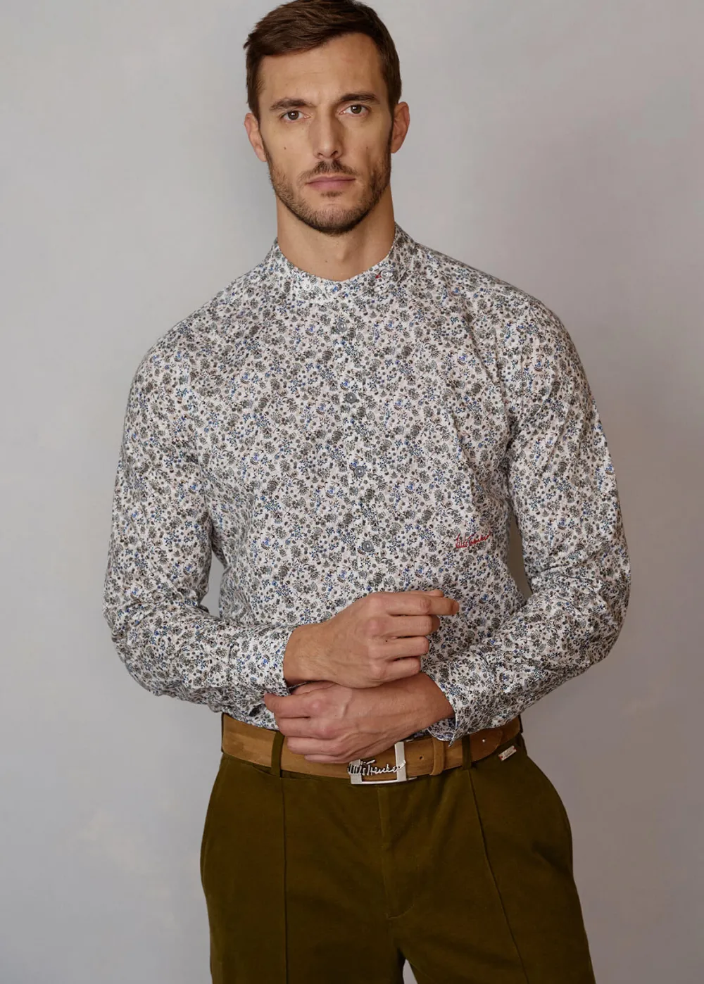 - Dieses Hemd im Regular Fit besticht durch seinen raffinierten Stehkragen und das feine Mikroblumenmuster auf komfortablem Baumwollstretch. Kombiniere es zu einem coolen Casual Look aus Jeans und Lederjacke oder zu einem eleganteren Outfit, wie einem einfarbigen Anzug.