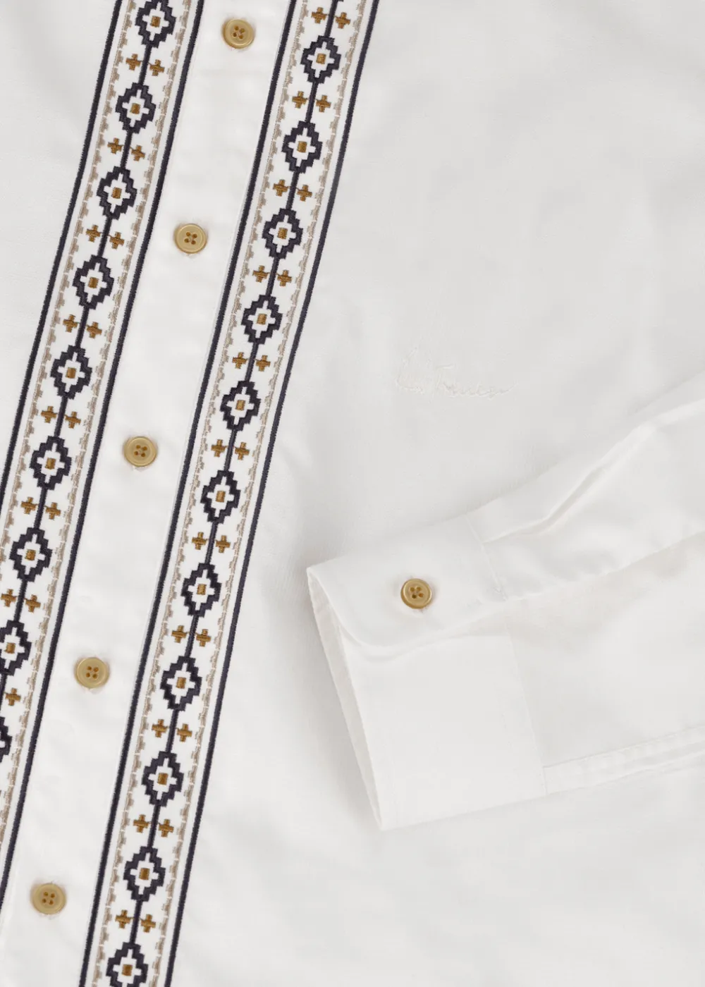 - Dieses Hemd im Regular Fit mit Haifischkragen besteht aus reiner, strukturierter Baumwolle und bringt mit seiner gestickten Bordüre im Ethno-Stil ein Stück lateinamerikanische Folklore in Deine Garderobe.