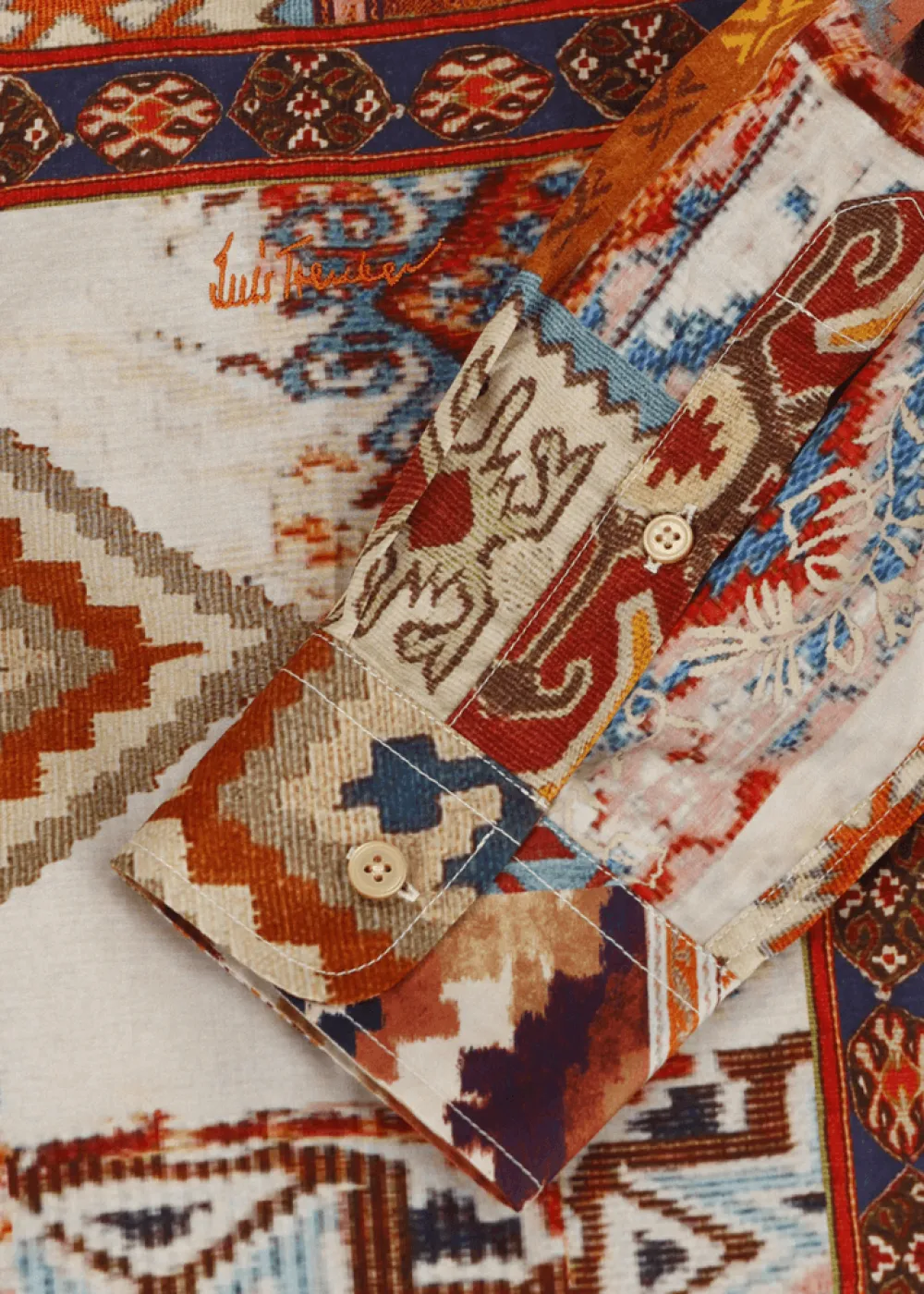 - Dieses Hemd im Regular Fit mit französischem Kragen besteht aus reiner Baumwolle mit einem exklusiv für Luis Trenker entworfenen Print. Das Ethno-Design im Patchwork-Stil sorgt dafür, dass Du ein echtes Unikat trägst, denn es ist bei jedem einzelnen Hemd unterschiedlich platziert. Daher ist auch das hier sichtbare Produktbild nur beispielhaft.