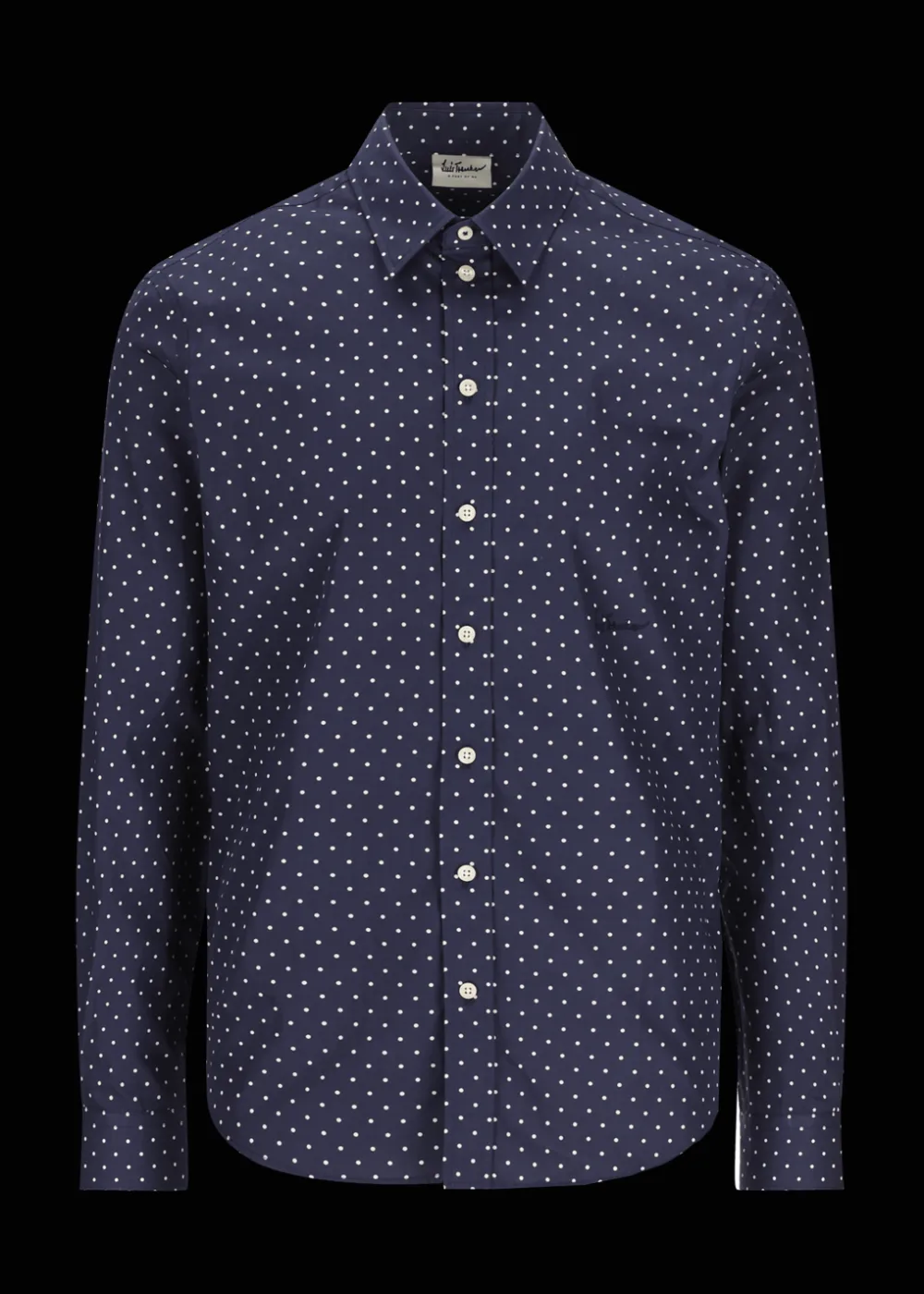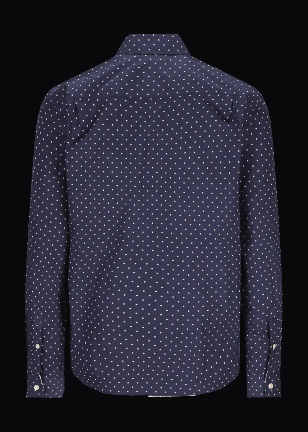 - Dieses Hemd im Regular Fit mit Kentkragen besteht aus reiner Baumwolle mit Pünktchenmuster und bringt jugendliche Leichtigkeit in strenge Business-Looks. Die durchgehende Knopfleiste, die abgerundeten Saumkanten und die dezente kleine Logostickerei sind weitere Eigenschaften, die dieses Modell auszeichnen.