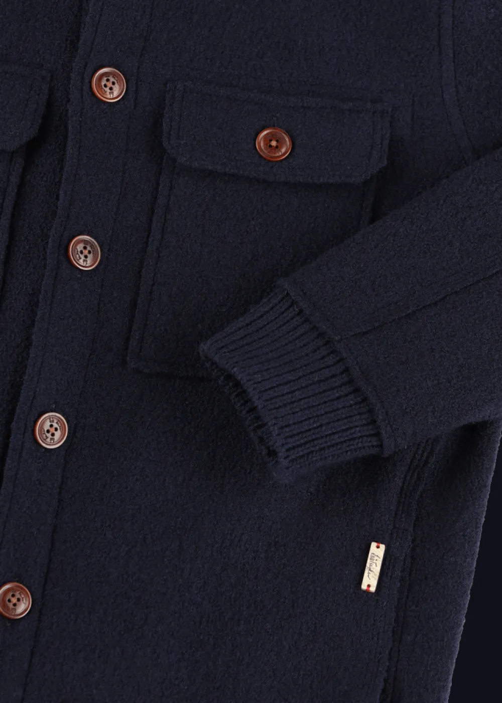Besonderheiten: Leichter Walk für extra Tragekomfort, hochwertige Verarbeitung mit Raw-Cut-Nähten, Bündchen im Rippstrick, Verstärkung an der Innenseite der Knopfleiste für mehr Stabilität, Logoplakette in Hornoptik an der linken Tasche
