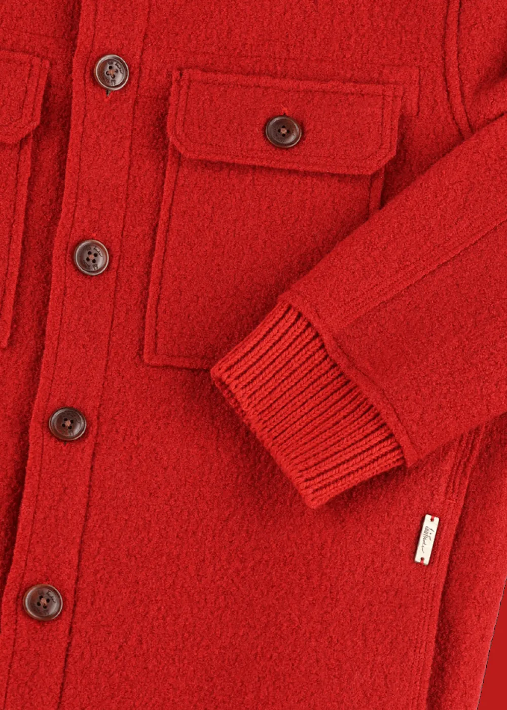 Besonderheiten: Leichter Walk für extra Tragekomfort, hochwertige Verarbeitung mit Raw-Cut-Nähten, Bündchen im Rippstrick, Verstärkung an der Innenseite der Knopfleiste für mehr Stabilität, Logoplakette in Hornoptik an der linken Tasche