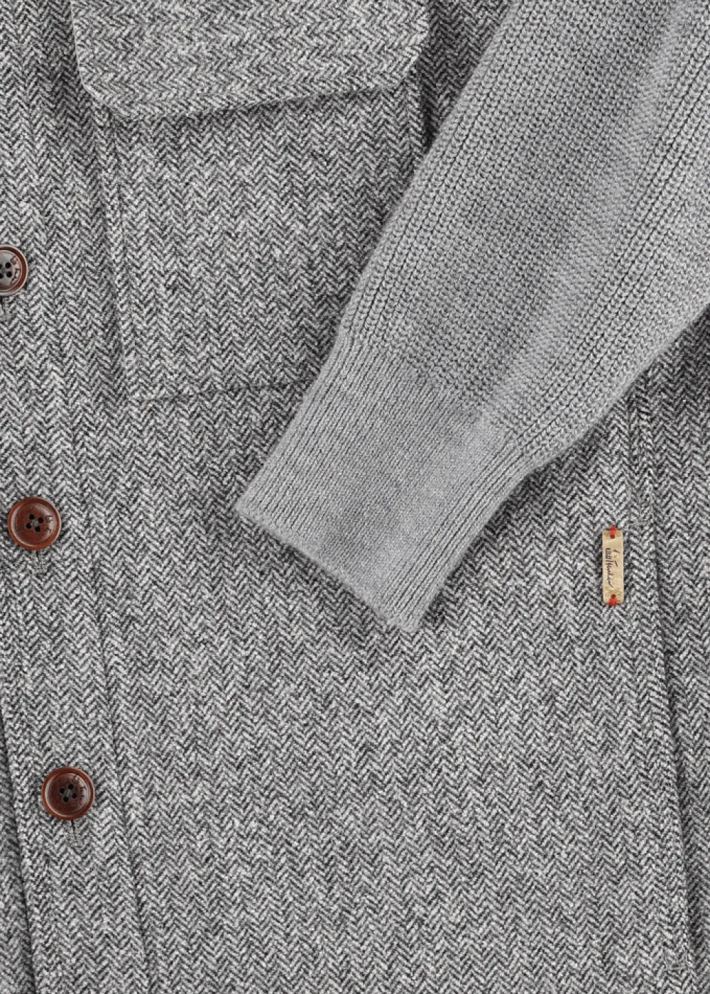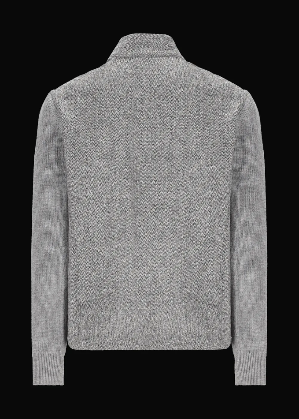 Besonderheiten: Körper aus leichter Wollmischung mit Mikro-Fischgrätmuster, Ärmel aus reiner Wolle im Perlstrick mit Bündchen im feinen Rippstrick, Logoplakette in Hornoptik an der linken Seitentasche - Unser Model Federico ist 1,88 m groß und trägt Größe 50.