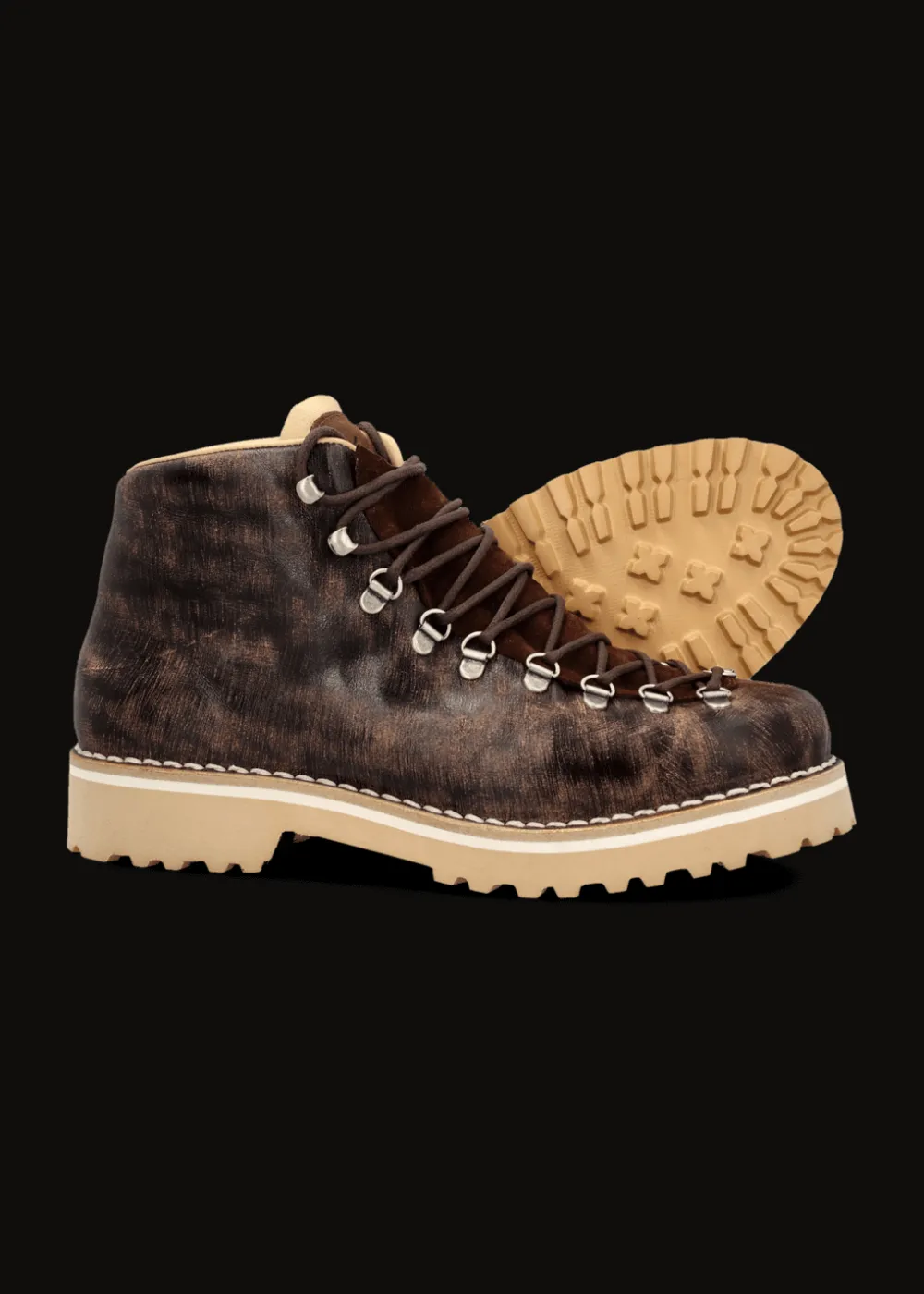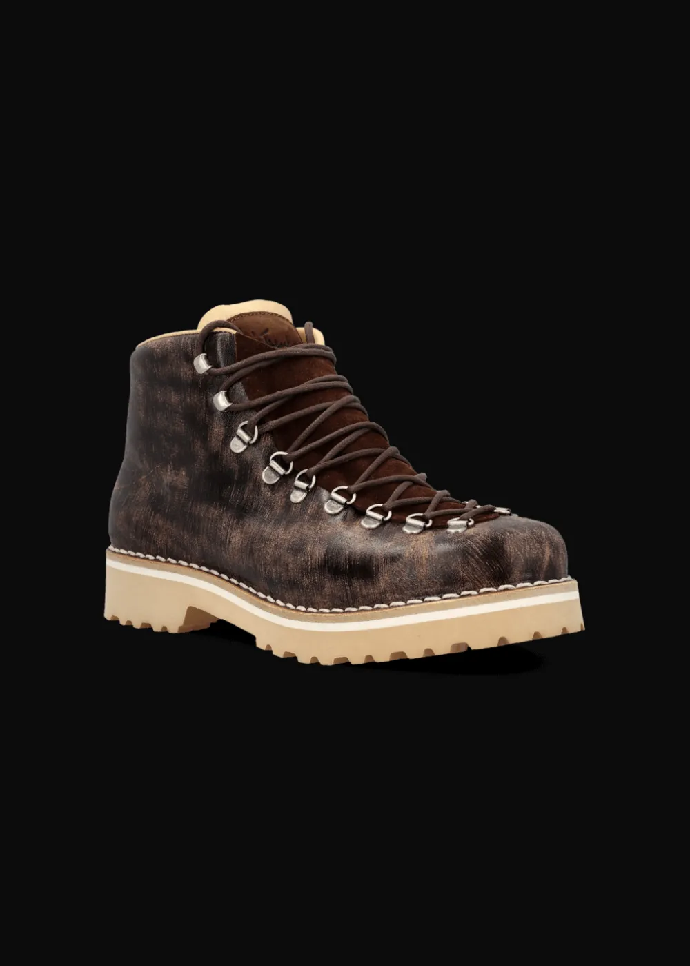 Innensohle: Atmungsaktive Kork-Einlegesohle - Besonderheiten: Zunge aus Wildleder mit geprägtem Luis Trenker Logo, rahmengenähte Machart, in traditioneller Manufaktur in Italien von Hand gefertigt