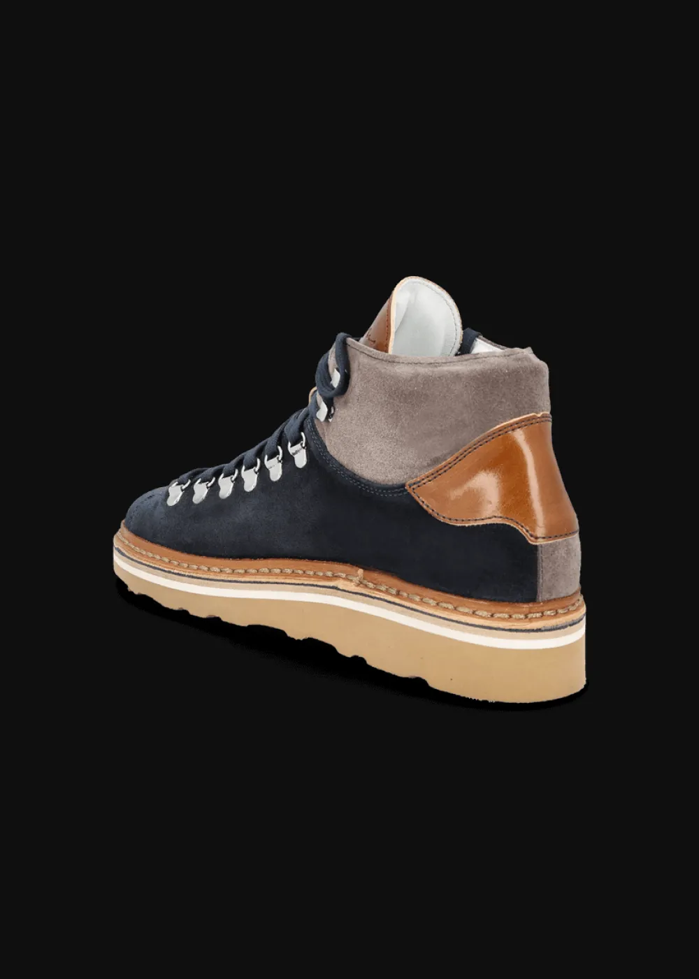 - Dieser Sneaker aus echtem Veloursleder vereint sportlichen Charakter mit italienischer Handwerkskunst: Die rahmengenähte Machart, die robuste Vibramsohle und der Materialmix mit Color Blocking Effekt sind seine unverkennbaren Markenzeichen.