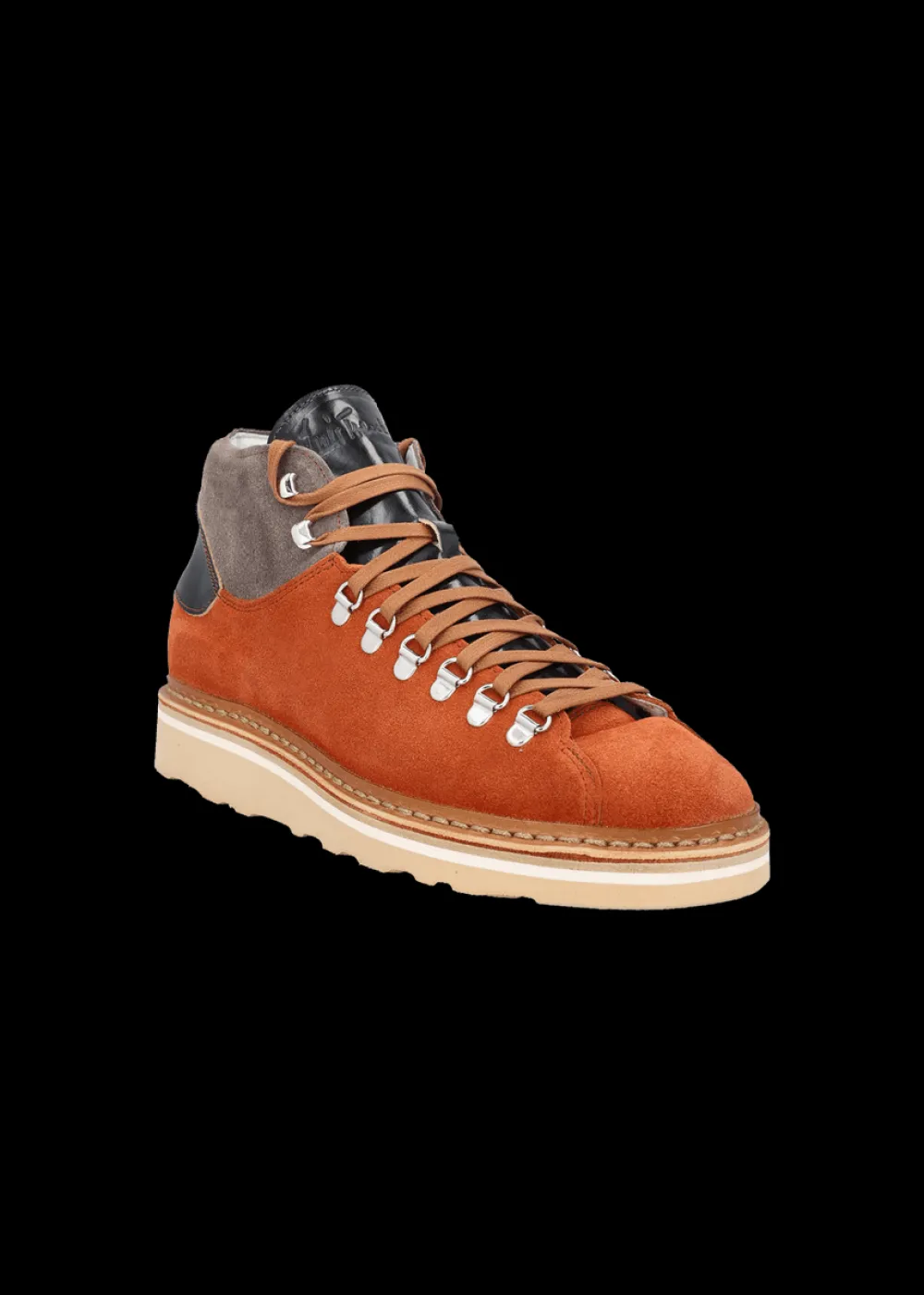 Innensohle: Atmungsaktive Kork-Einlegesohle - Besonderheiten: Quartier aus grauem Wildleder, Hinterkappe und Zunge aus Glattleder mit geprägtem Luis Trenker Logo, rahmengenähte Machart,in traditioneller Manufaktur in Italien von Hand gefertigt