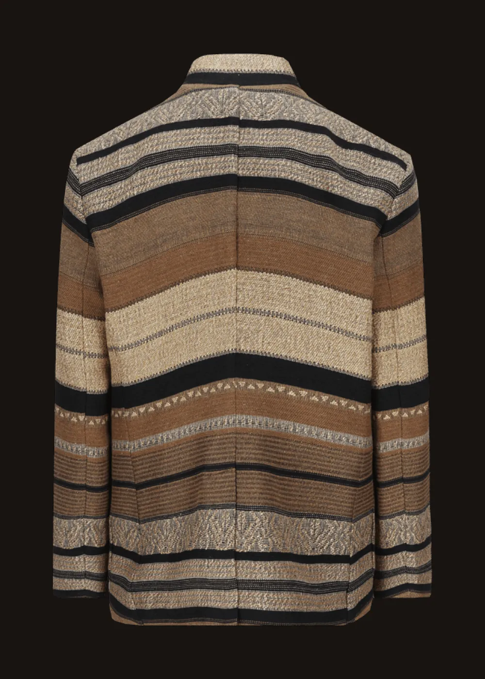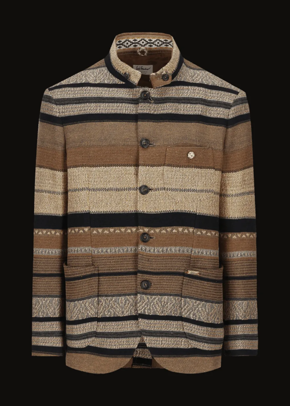 Besonderheiten: Einzigartiges Jacquard-Streifenmuster, Jacquardband mit Ethnomotiv an der Krageninnenseite, Logoplakette in Hornoptik an der linken Tasche - Unser Model Valentin ist 1,82 m groß und trägt Größe 50.