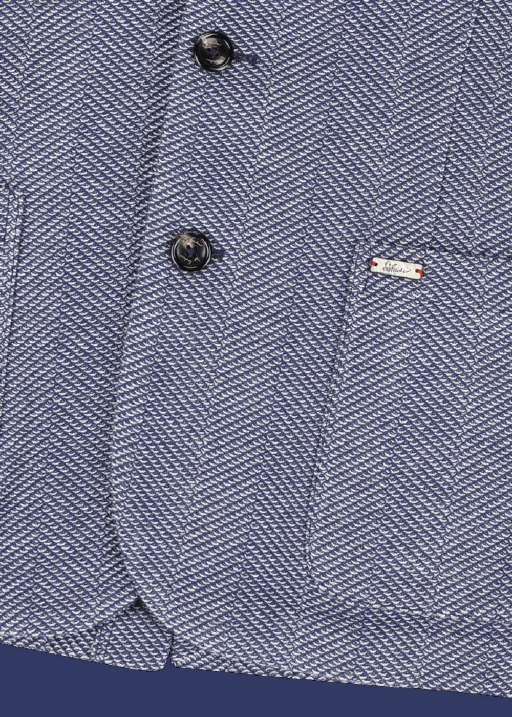 Herkunft: In Italien gefertigt - Besonderheiten: Leichtes Baumwolljersey mit zeitlosem Fischgrätmuster, extra Tragekomfort, Logoplakette in Hornoptik an der linken Tasche