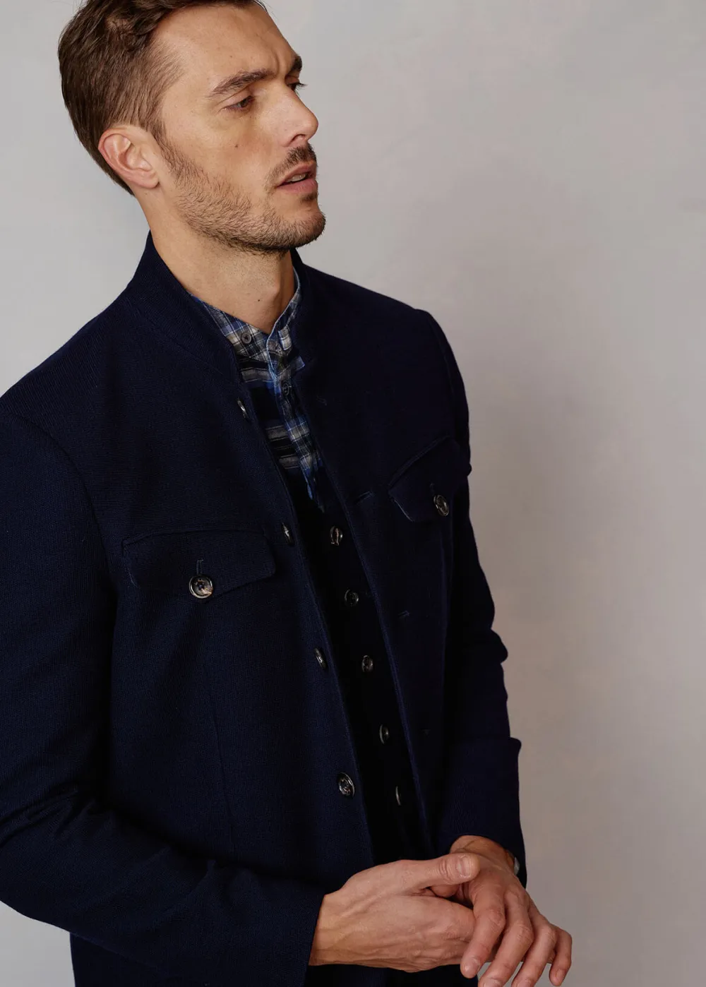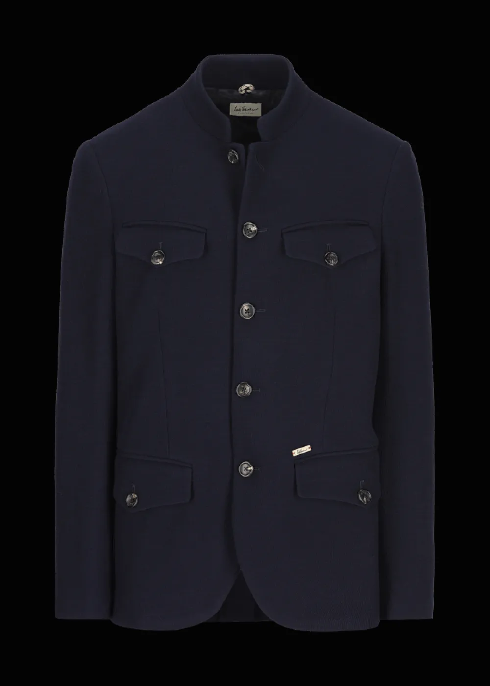 - Dieser halbgefütterte Blazer im Regular Fit mit Stehkragen besteht aus einer hochwertigen Mischung aus Schurwolle und Baumwolle, verarbeitet zu einem besonders bequemen Jersey. Er vereint italienische Eleganz und maximalen Tragekomfort, was ihn zu einem unverzichtbaren Lieblingsteil in jeder Herrengarderobe macht.