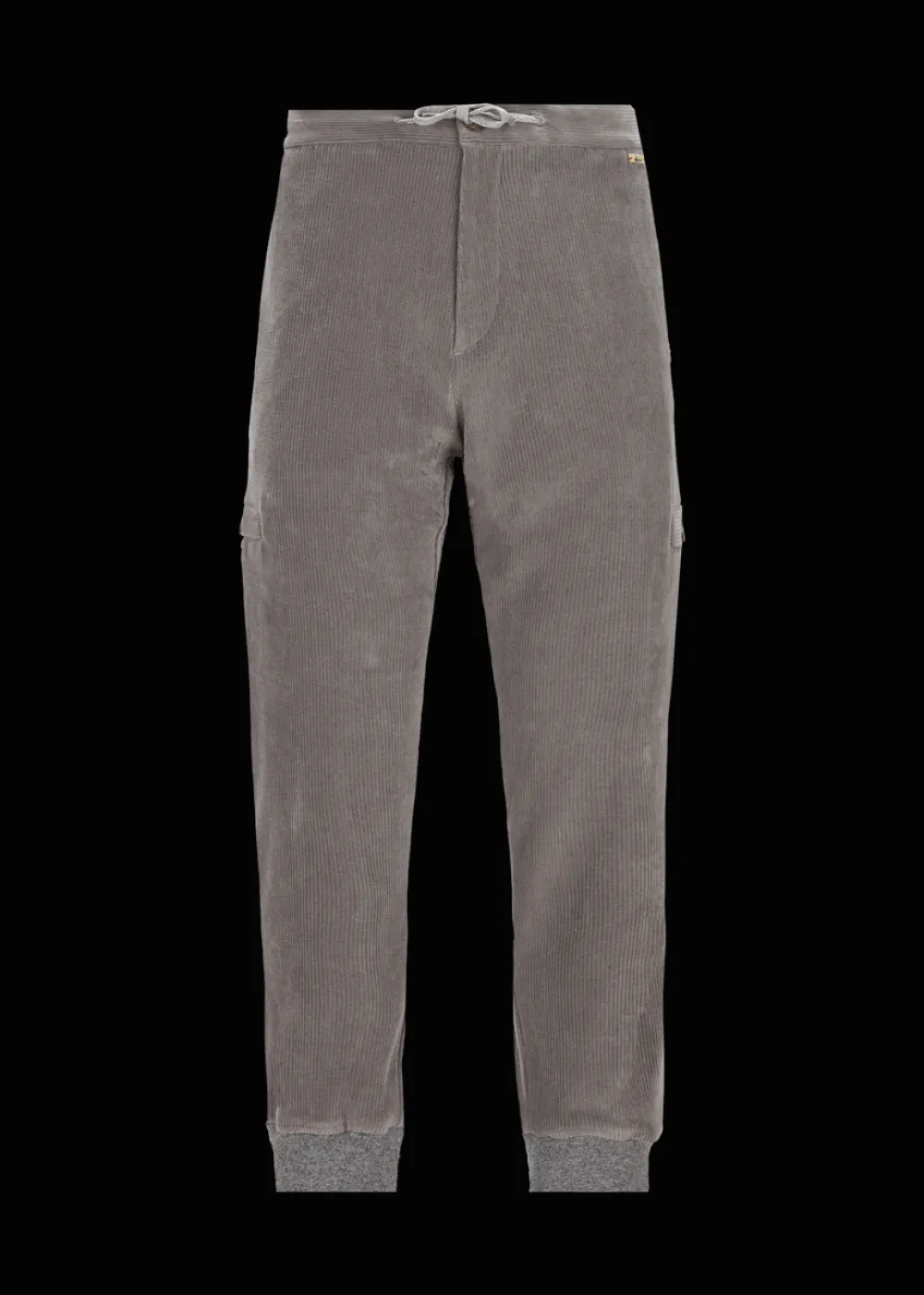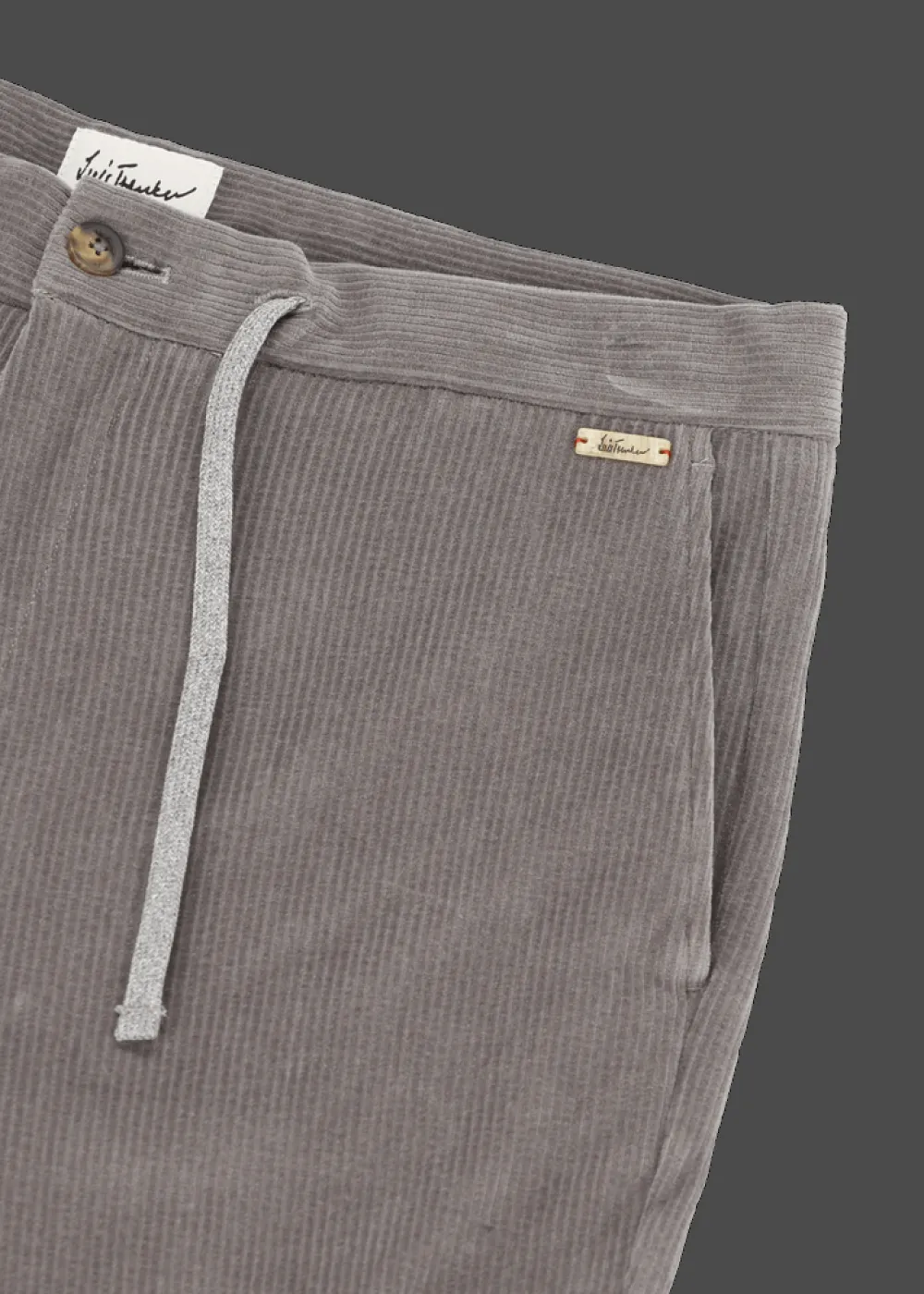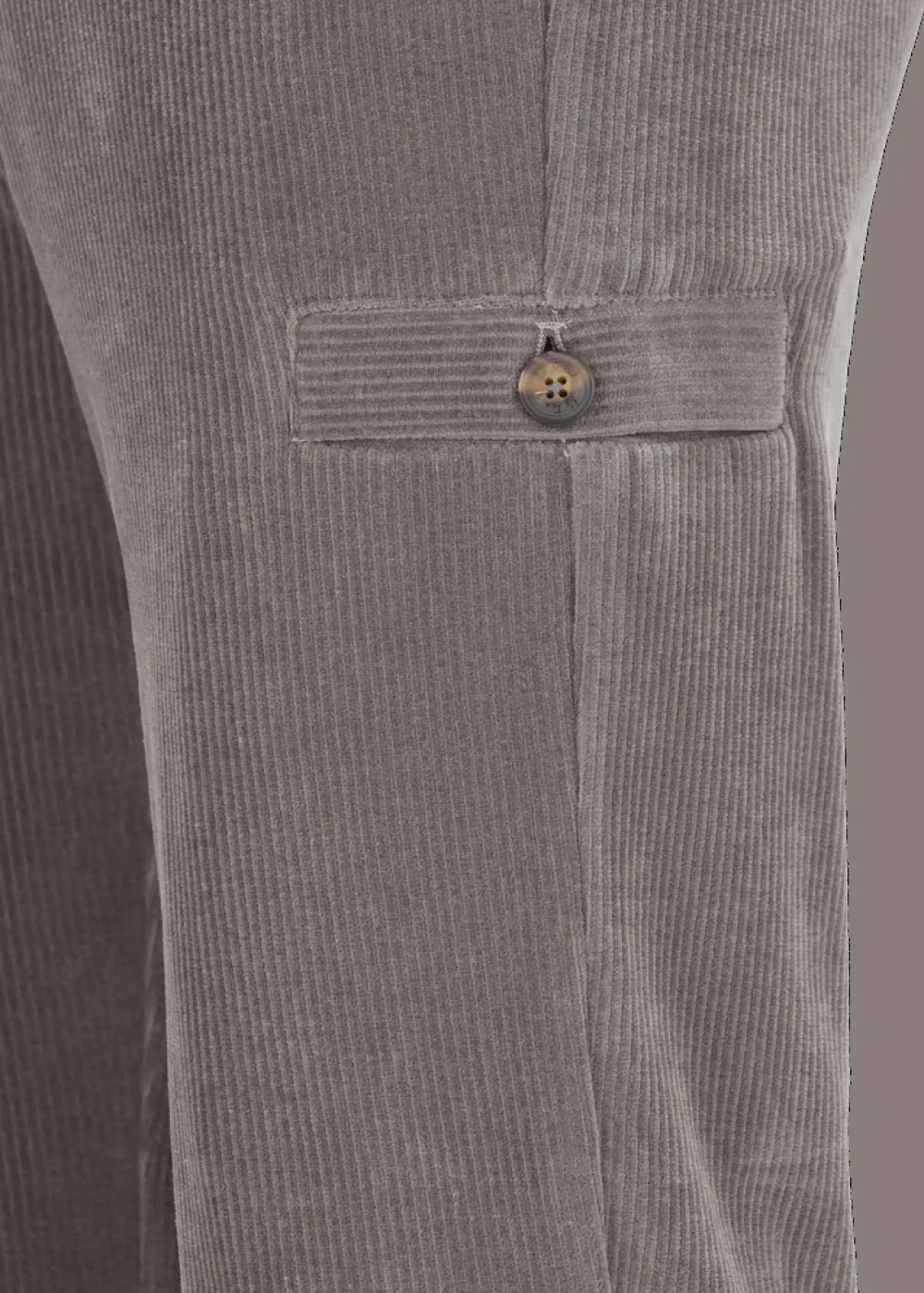 Herkunft: Stoff aus Italien - Besonderheiten: Bequemer Jersey-Cord mit extra Tragekomfort, Knöpfe aus echter Steinnuss, Rippstrickbündchen am Beinabschluss, Logoplakette in Holzoptik links am Hosenbund