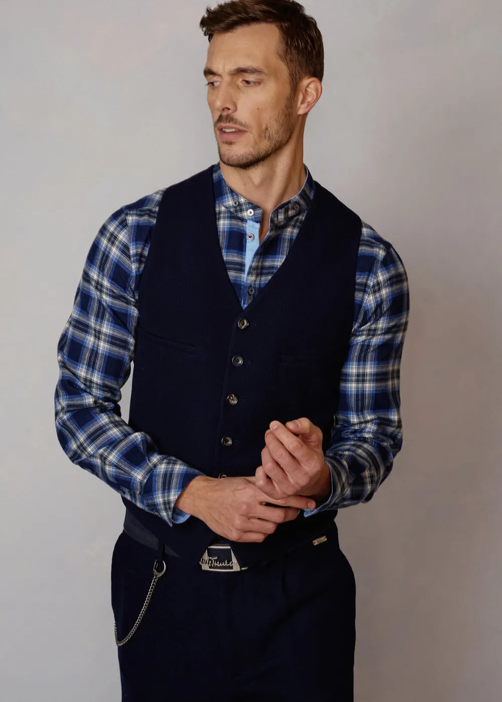 - Diese einreihige Weste im Regular Fit mit V-Ausschnitt besteht aus einer hochwertigen Mischung aus Schurwolle und Baumwolle, verarbeitet zu einem besonders bequemen Jersey – ein Material, das italienische Eleganz und maximalen Tragekomfort vereint.