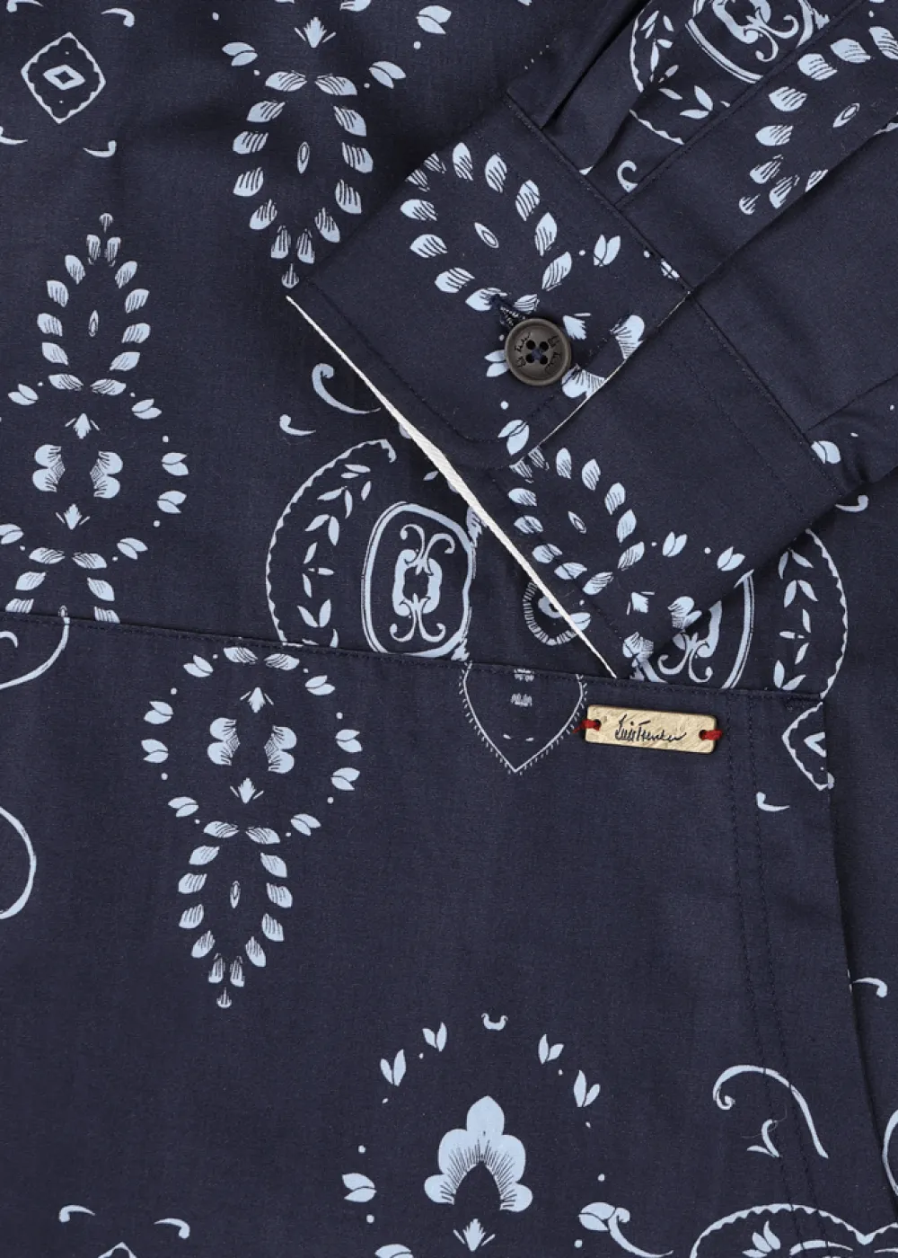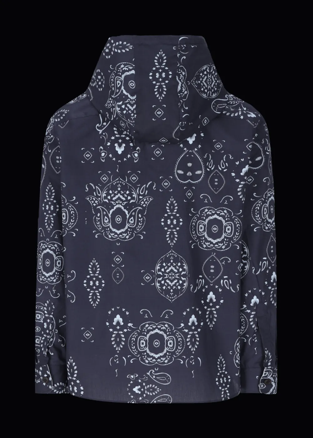 Knopfleiste: Kurze Knopfleiste - Besonderheiten: Exklusiv für Luis Trenker entworfener Print, Knöpfe aus echter Steinnuss, Kordel im Ethno-Stil, Knopf oberhalb des Ellenbogens zum Aufkrempeln der Ärmel, praktische Kängurutasche mit Logoplakette vorne, Stickerei an der Innenseite der Manschette