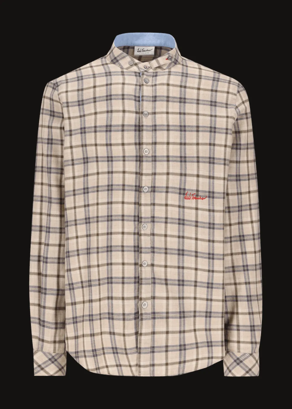 - Dieses stilvolle Hemd im Regular Fit mit Stehkragen und lebendigem Karomuster besteht aus einer hochwertigen Mischung aus Baumwolle und Merinowolle. Hellblaue Kontraste aus Baumwolle setzen Akzente und verleihen dem Design zusätzliche Frische. Eine besondere Note bietet die StickereiDer Berg ruft“ an der Innenseite des Handgelenks.