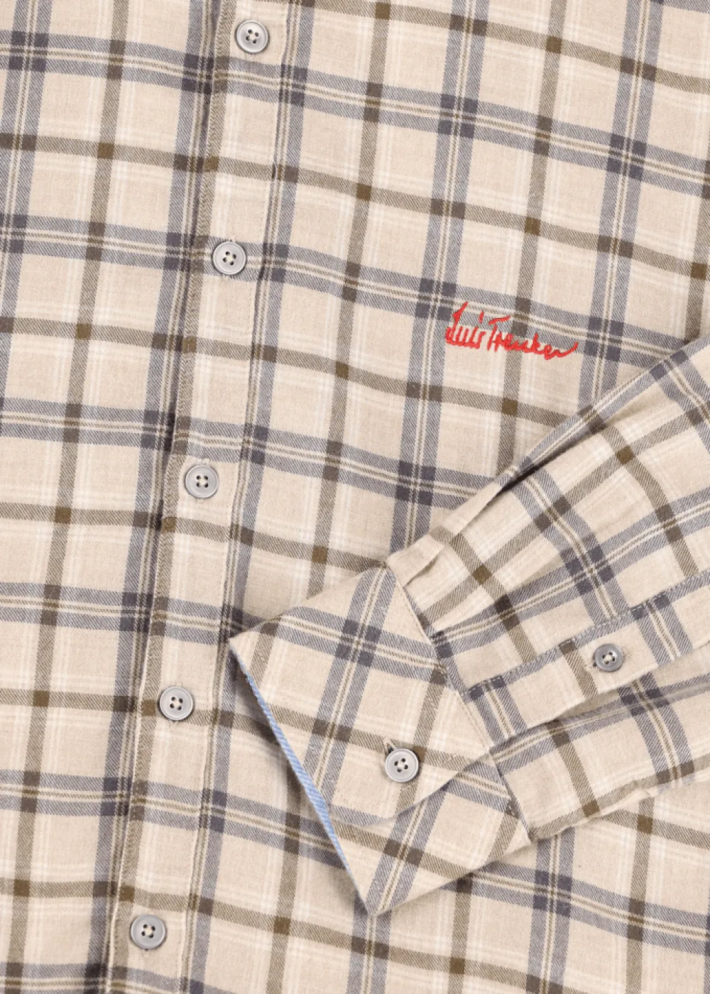 Knopfleiste: Durchgehende Knopfleiste - Besonderheiten: Akzente im Kontraststoff an den Innenseiten von Kragen und Manschette, kleines gesticktes Logo an der linken Seite