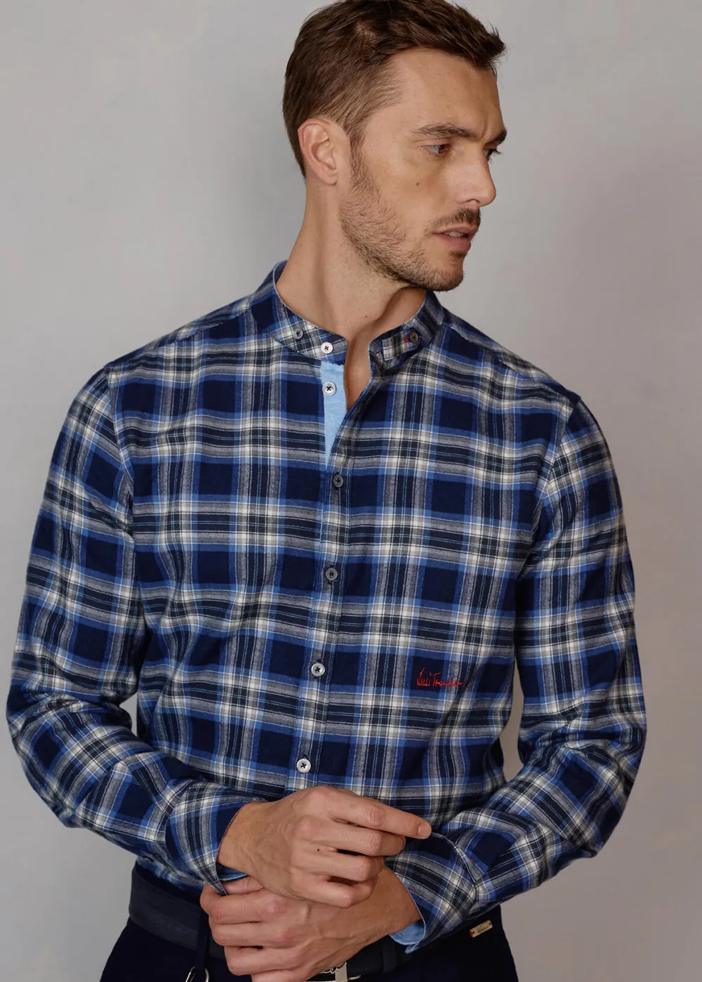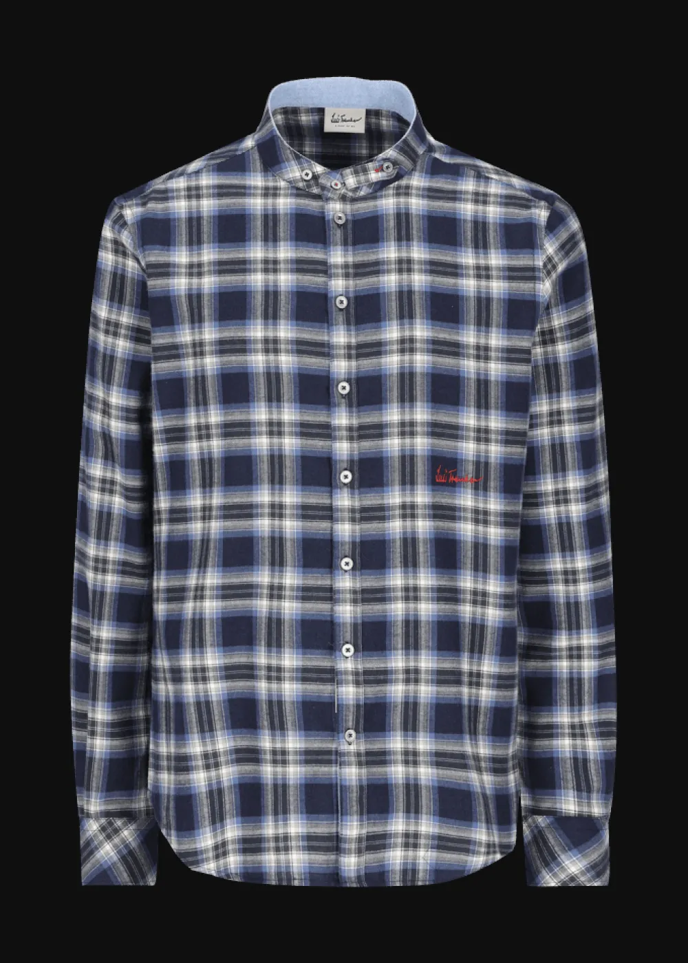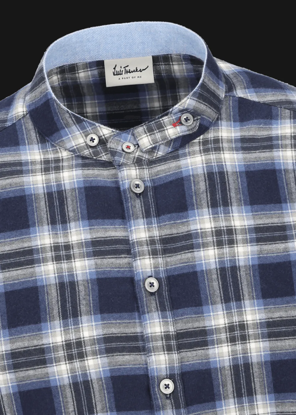 - Dieses stilvolle Hemd im Regular Fit mit Stehkragen und lebendigem Karomuster besteht aus einer hochwertigen Mischung aus Baumwolle und Merinowolle. Hellblaue Kontraste aus Baumwolle setzen Akzente und verleihen dem Design zusätzliche Frische. Eine besondere Note bietet die StickereiDer Berg ruft“ an der Innenseite des Handgelenks.