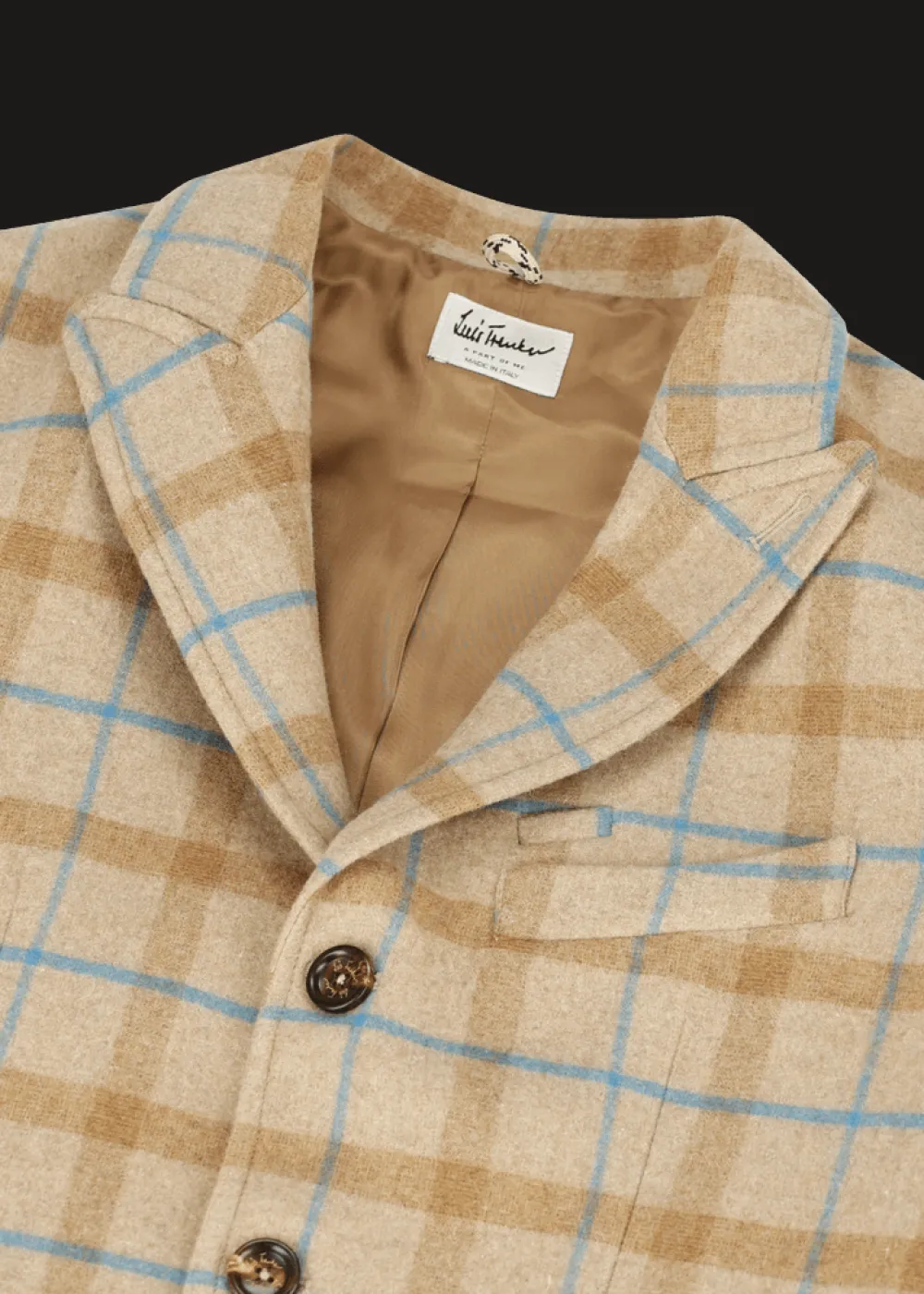 - Dieser halbgefütterte Blazer im Regular Fit mit Reverskragen besteht aus einer angenehmen Wollmischung mit Karomuster, die exklusiv für Luis Trenker gefertigt wurde. Ebenso einzigartig und exklusiv ist auch das Innenfutter im Schulterbereich, welches mit einem Ethno-Print im Patchwork-Stil besticht.