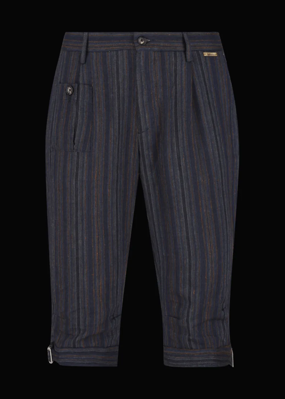- Diese Knickerbocker im Comfort Fit besteht aus einer angenehmen Mischung aus Baumwolle, Leinen und Seide mit mehrfarbigen Längsstreifen. Sie hat eine aufgesetzte Tasche mit Knopfverschluss am rechten Vorderbein, Knöpfe aus Echthorn, sowie einen mithilfe einer Schnalle in der Weite regulierbaren Beinsaum.
