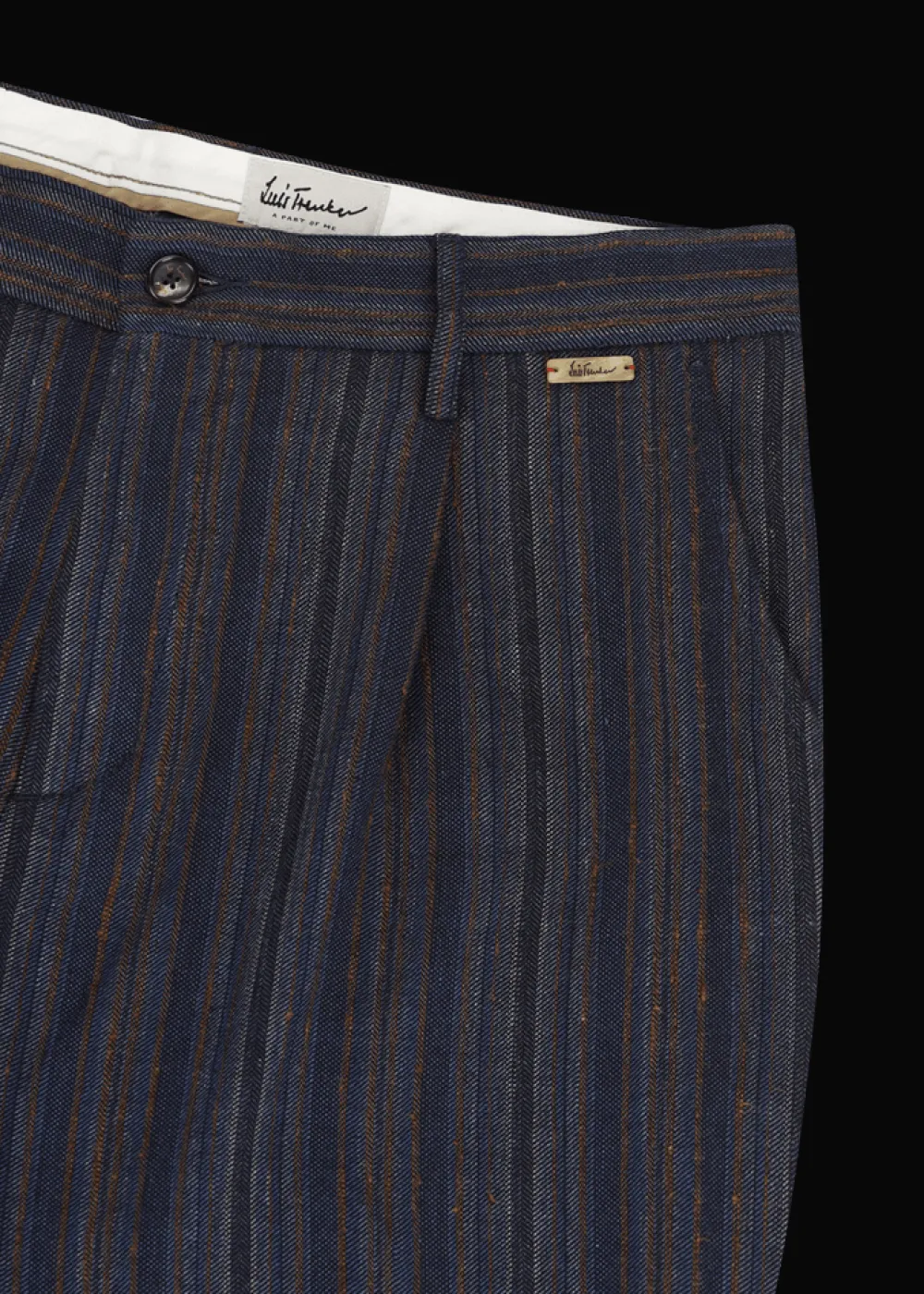 Herkunft: Stoff aus Italien - Besonderheiten: Knöpfe aus Echthorn, Logoplakette in Hornoptik links an der Taille